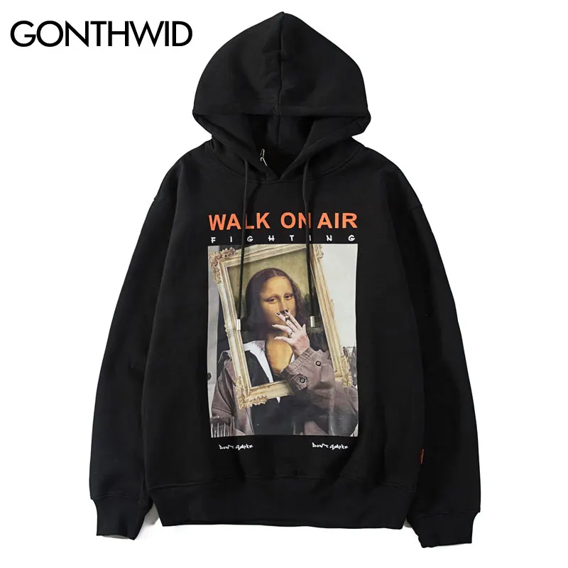 GONTHWID Забавный Мона Лиза Курение печати Флисовые толстовки пуловер толстовки с капюшоном в стиле Харадзюку уличная одежда худи в стиле хип-хоп Повседневное Топы