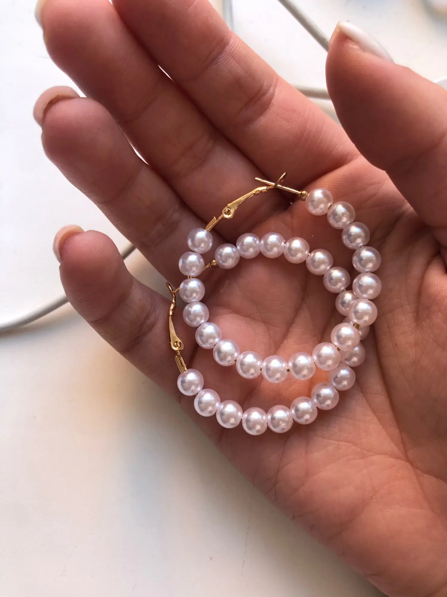 Серьги-кольца с жемчугом, в Корейском стиле
