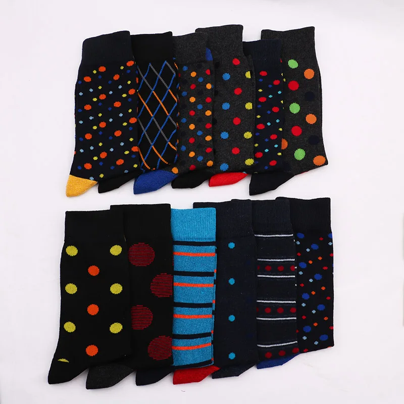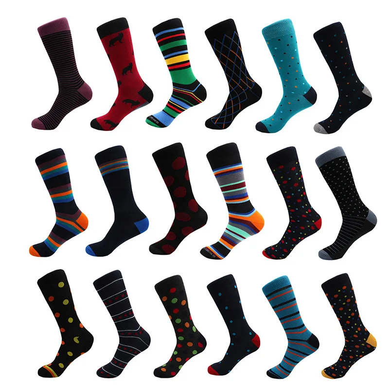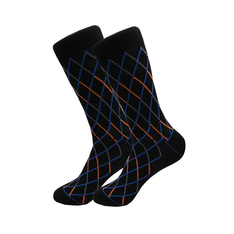 Носки мужские длинные из бамбукового волокна, повседневные клетчатые разноцветные хлопковые в стиле ретро, Осень-зима