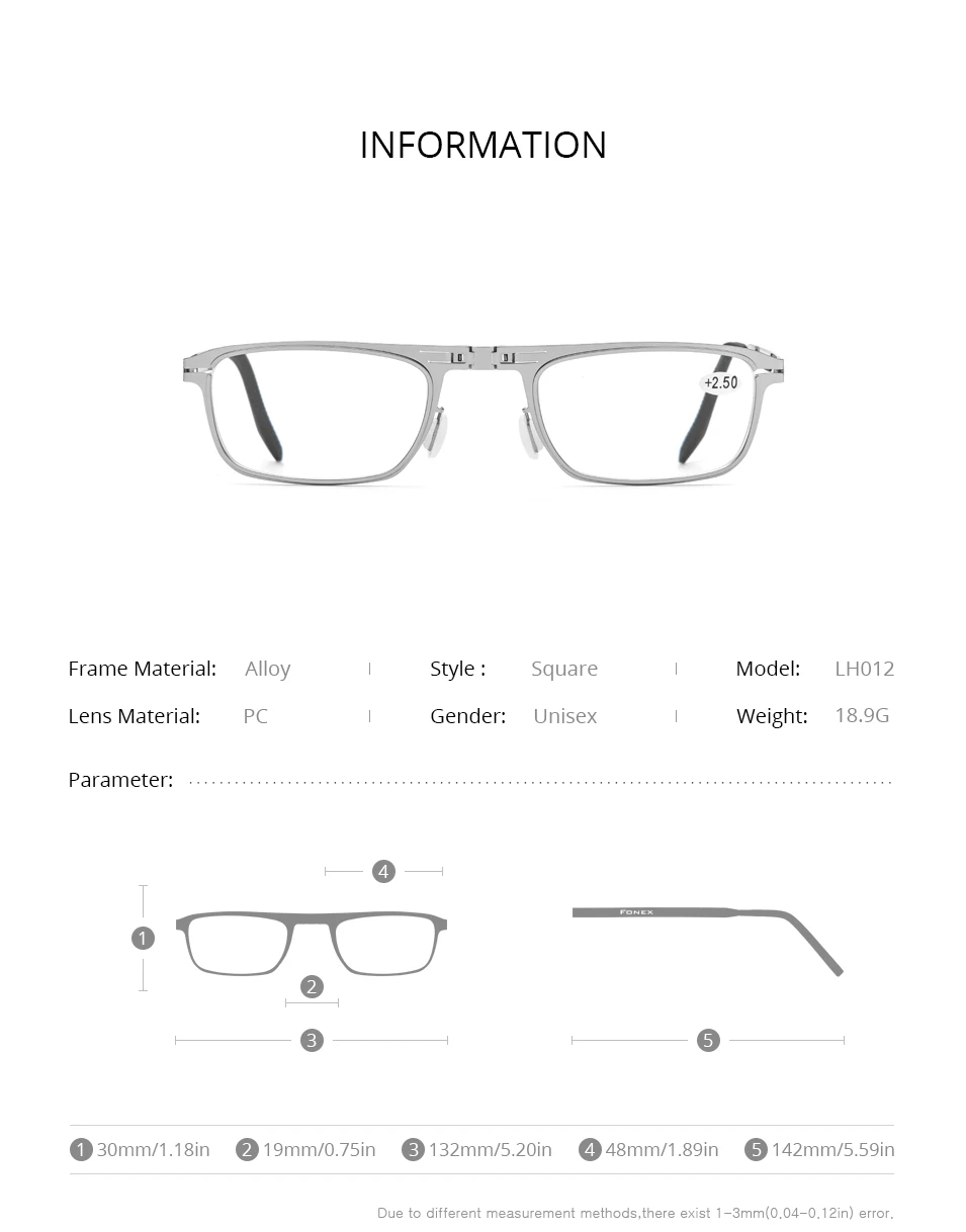FONEX Очки для чтения складные без винтов, для мужчин и женщин, Lh012