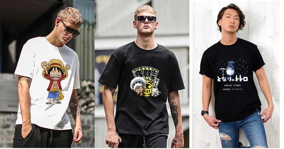 Футболка мужская с круглым вырезом, аниме треугольная рубашка с рис...