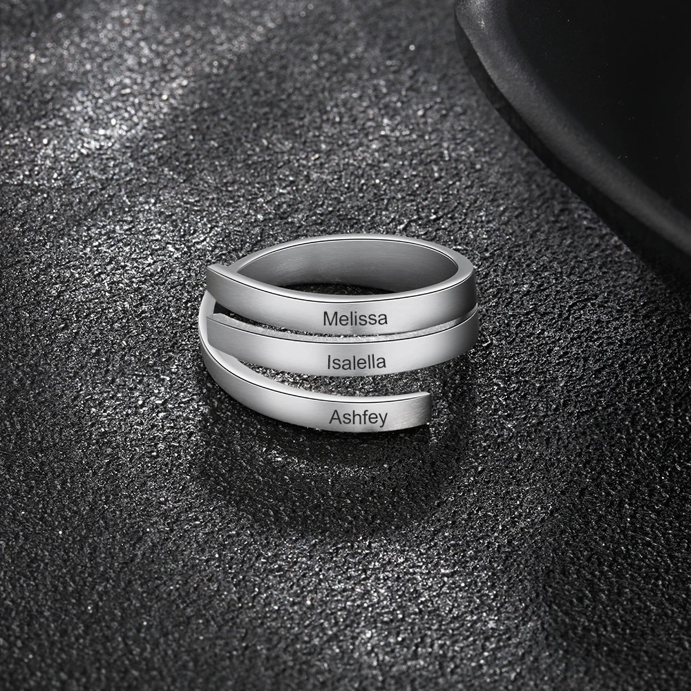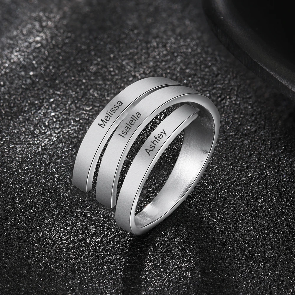Кольцо женское из нержавеющей стали, регулируемое, широкое, с гравировкой имена
