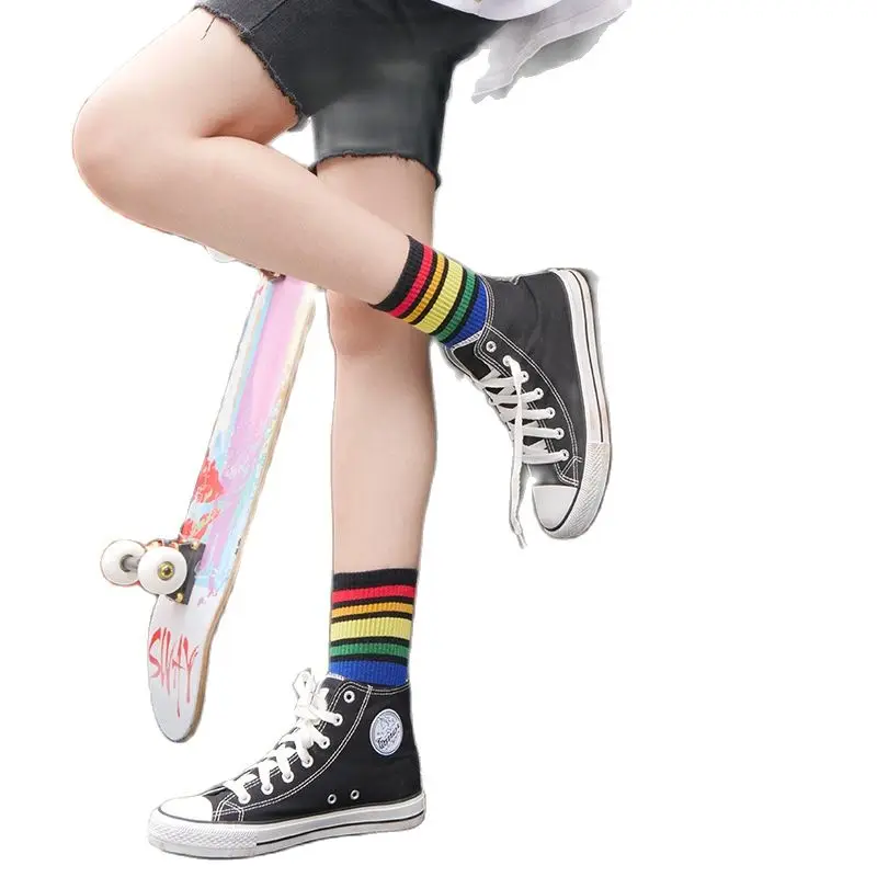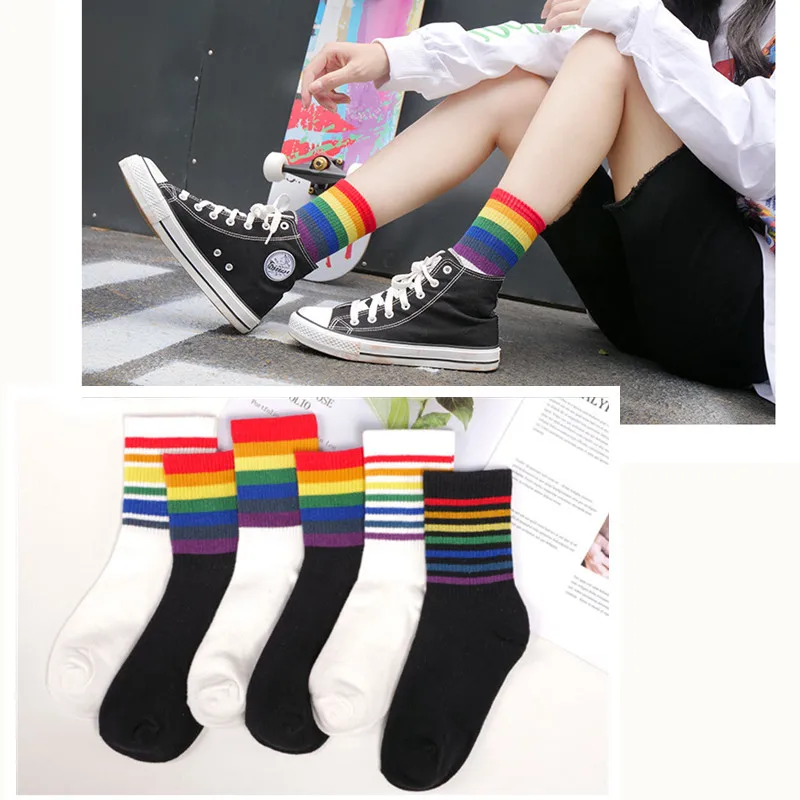 Носки женские, хлопковые, с принтом в виде бабочек, радужные