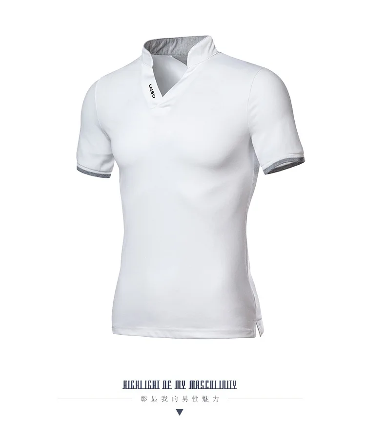 Летняя мужская рубашка поло из хлопка с коротким рукавом, с v-образ...