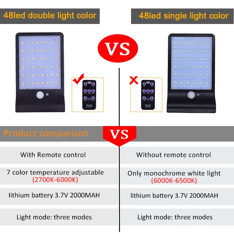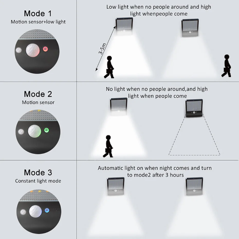 Уличный светильник с инфракрасным датчиком движения, 48 светодиодов, 3 режима, с регулируемой яркостью