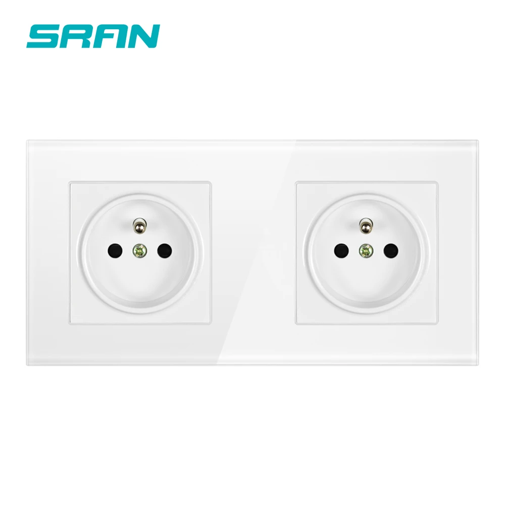 Двойная настенная розетка SRAN France, 16 А, 220 В, белаячерная пан...