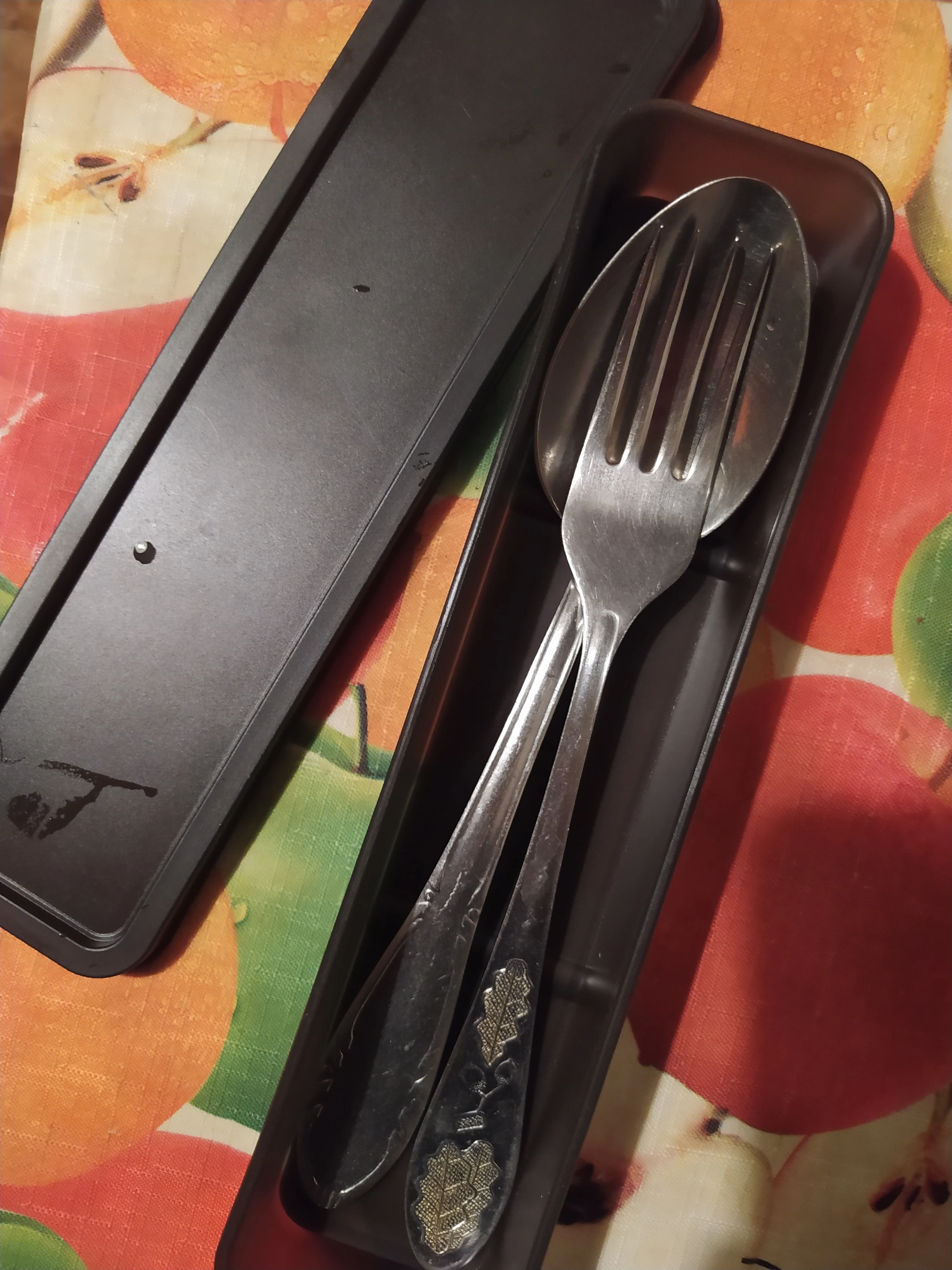 Ложка и вилка стандартных размеров поместились легко) Закрывается хорошо, плотно.