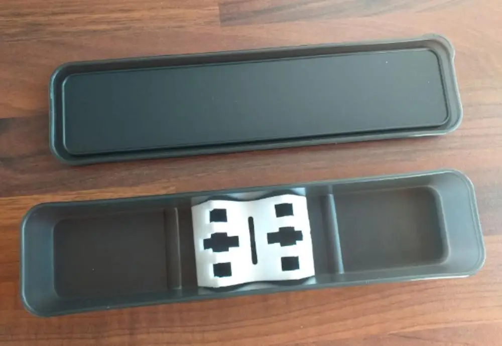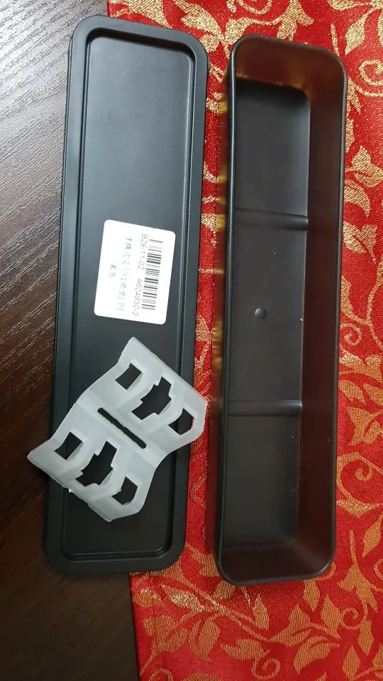Неплохой пенал для приборов. Продавец приклеял наклейку на верхнюю крышку, еле отмыли, только меламиновая губка помогла), если что.