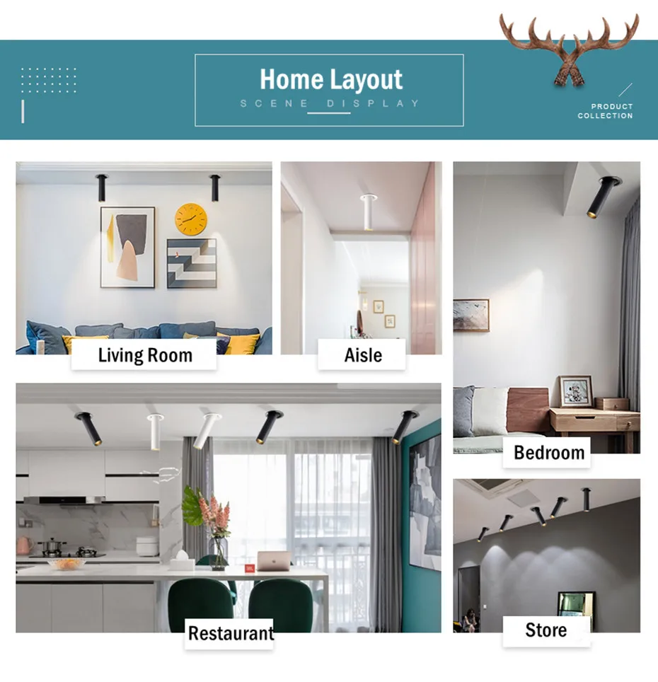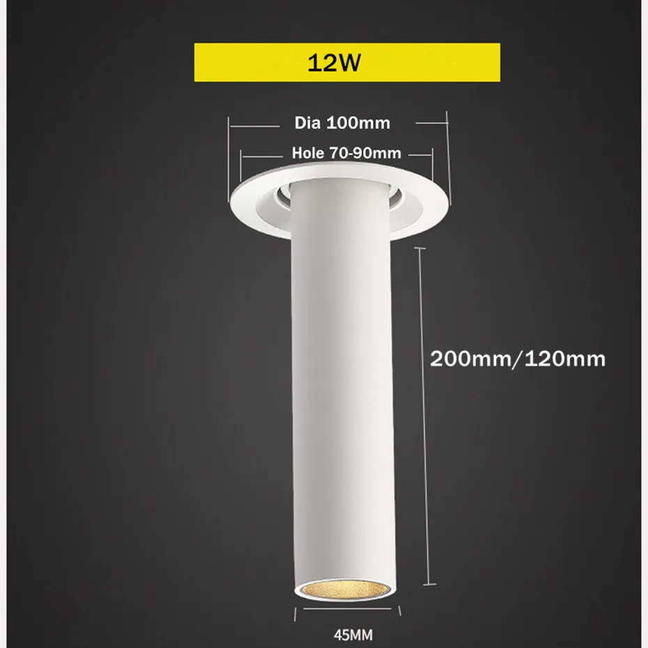 Современный светодиодный потолочный светильник 12 Вт, длинная трубка, встраиваемый потолочный светильник, длина 120 мм 200 мм, угловой Регулируемый точечный светодиодный светильник, точечная лампа
