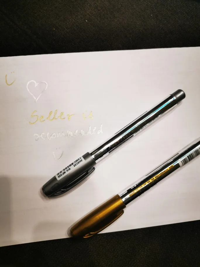 пришли ручки быстро, достаточно хорошо пишут, да и цвет надписи получается красивым, незнаю на сколько хватит этих ручек, но качеством и скоростью доставки доволен