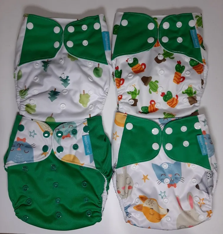 HappyFlute 8 подгузников + 8 вкладышей, детские тканевые подгузники, один размер, Регулируемые моющиеся многоразовые подгузники для маленьких девочек и мальчиков