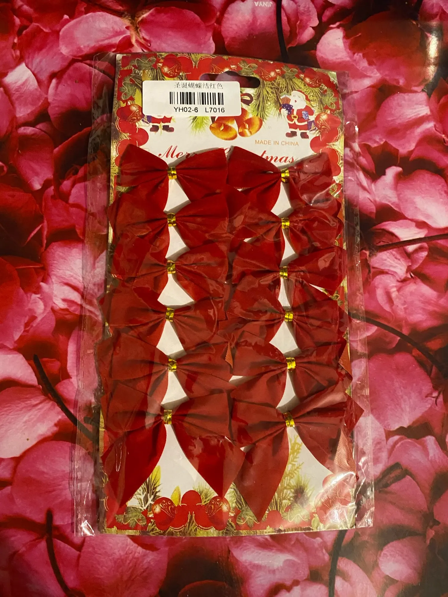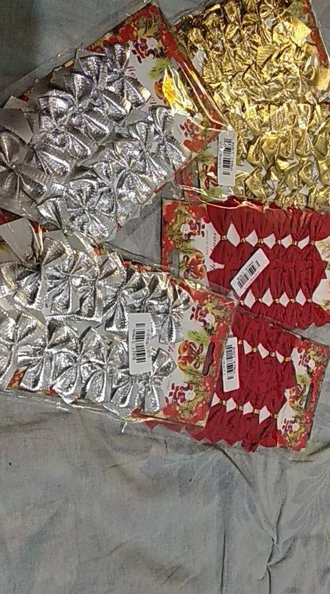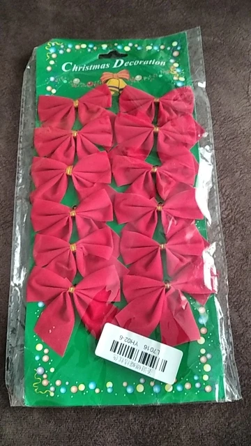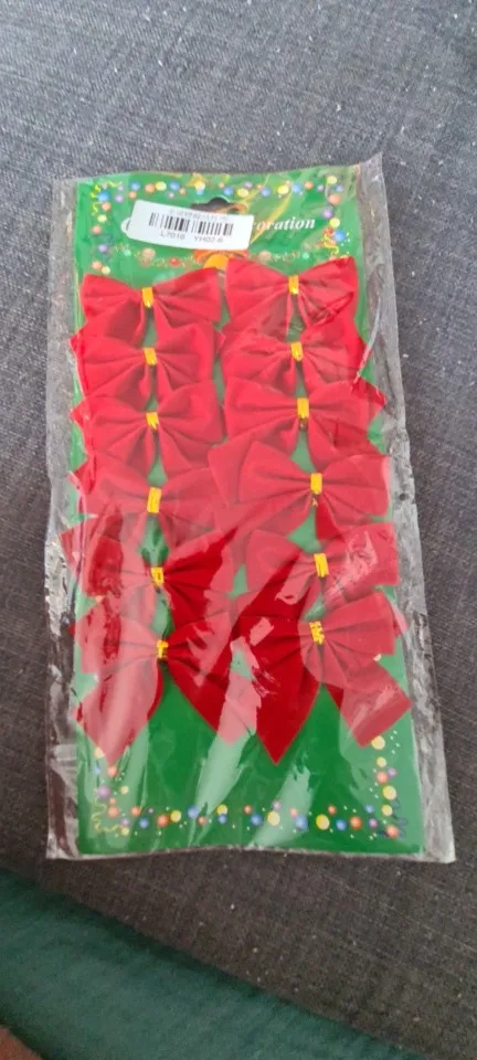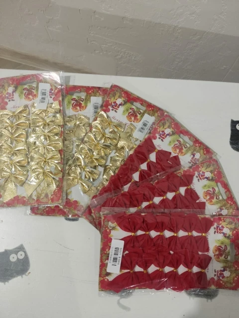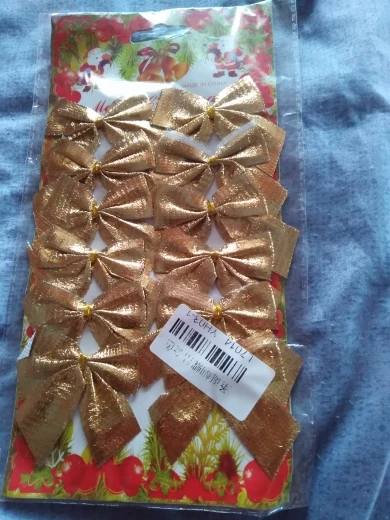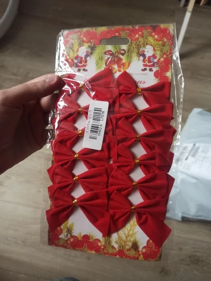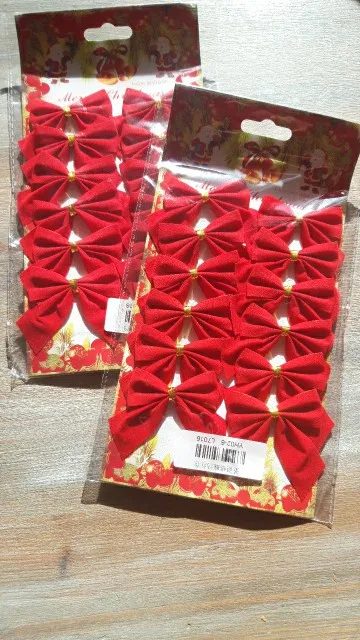 Очень милые бантики, можно прикрепить на ёлку или ёлочную игрушку, с обратной стороны проволочка. Дешевле, чем в Фикс прайсе. Доставка быстрая до СПб.