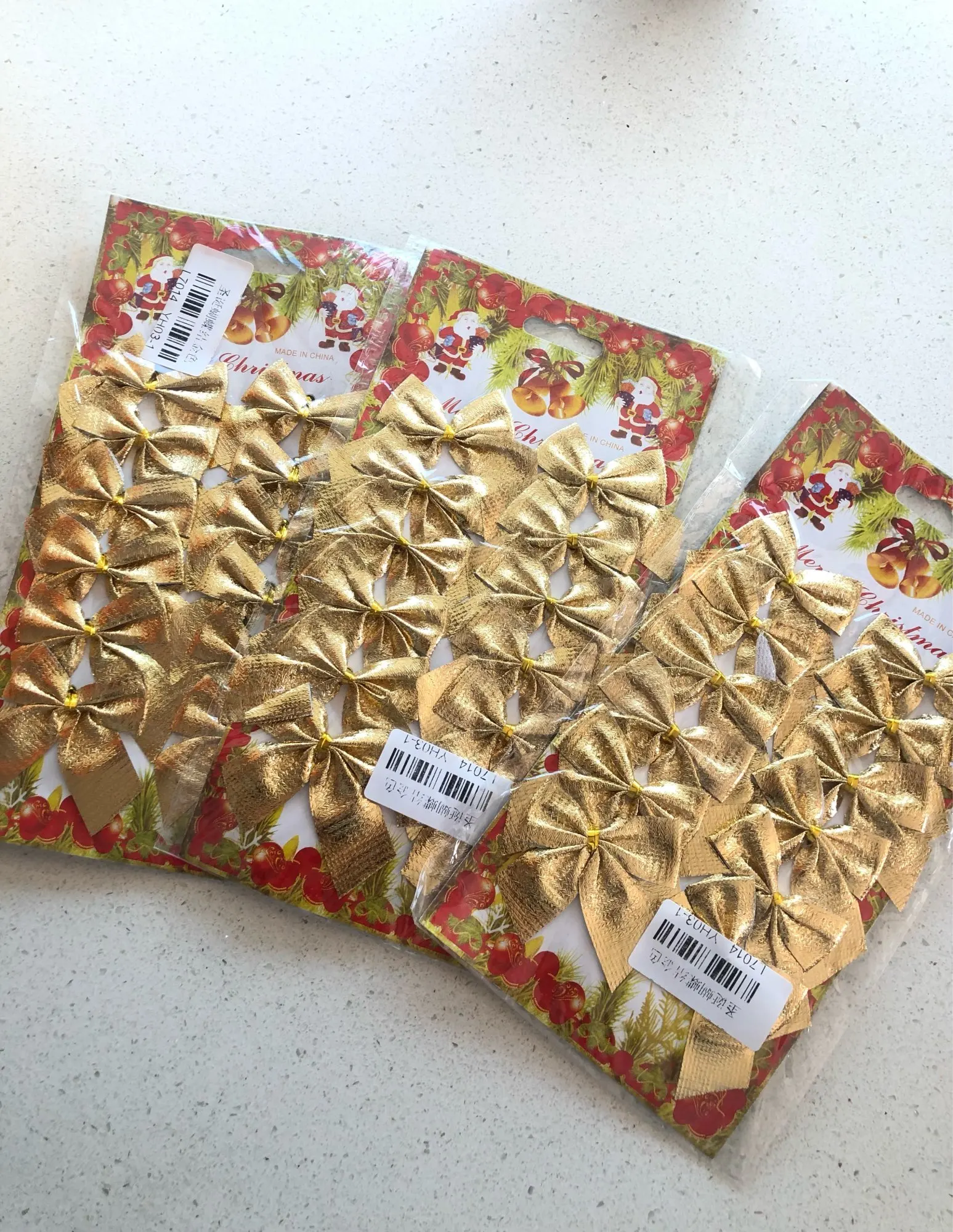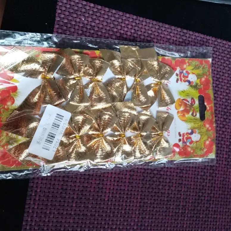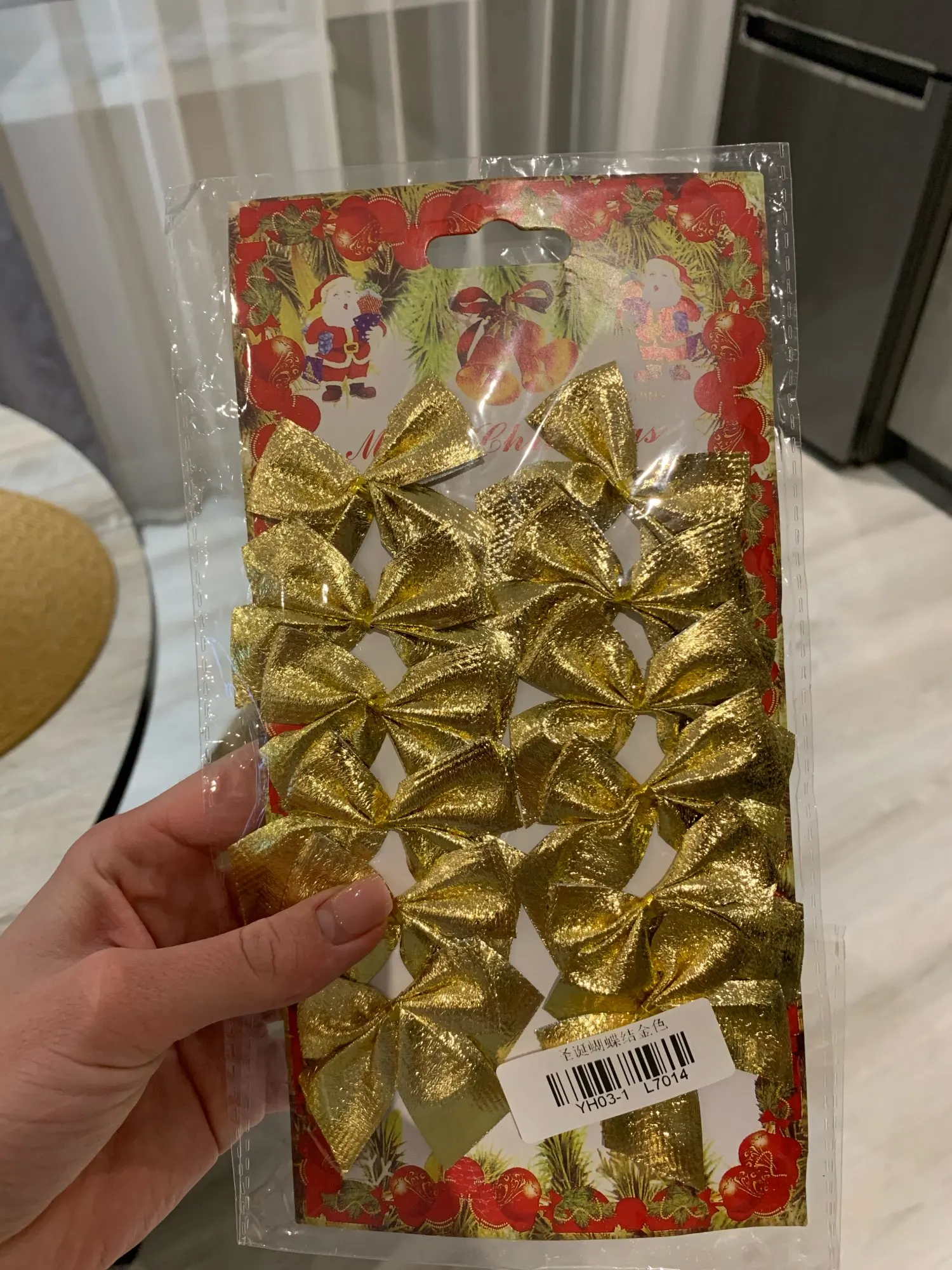 Очень милые бантики, можно прикрепить на ёлку или ёлочную игрушку, с обратной стороны проволочка. Дешевле, чем в Фикс прайсе. Доставка быстрая до СПб.