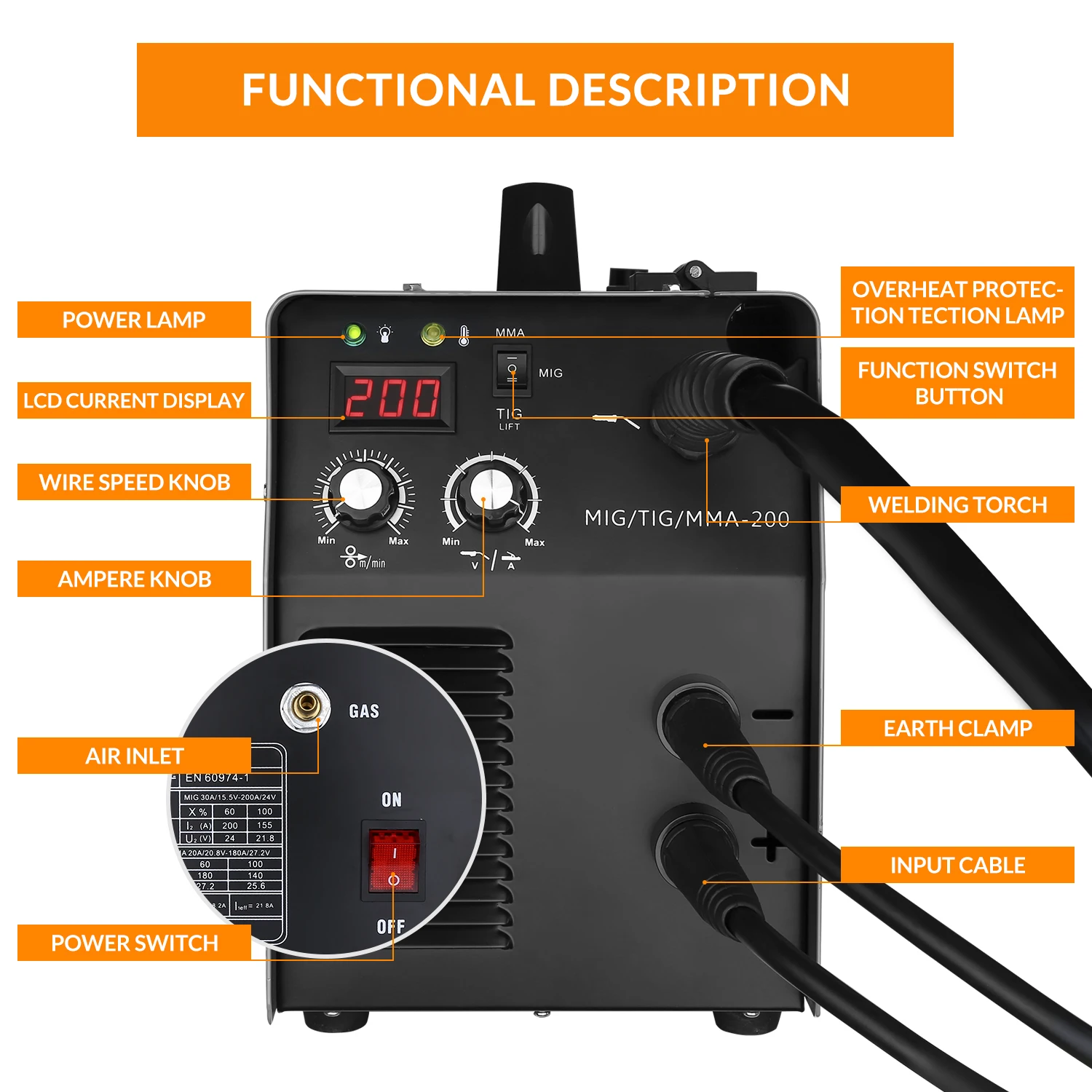 В MKA-200Y чрезвычайно универсален и идеально подходит для сварочный аппарат, который хочет работать на кузов автомобиля, бытовой ремонтных работ, или даже более фермы проектов, которые требуют дополнительного сварочного тока. В MKA-200Y работает на 220 вольт бытовой ток. Управление напряжением IGBT и контроль тока от 50 до 200 ампер позволяют настроить дугу, обеспечивая плавную и стабильную дугу на всех толщинах.