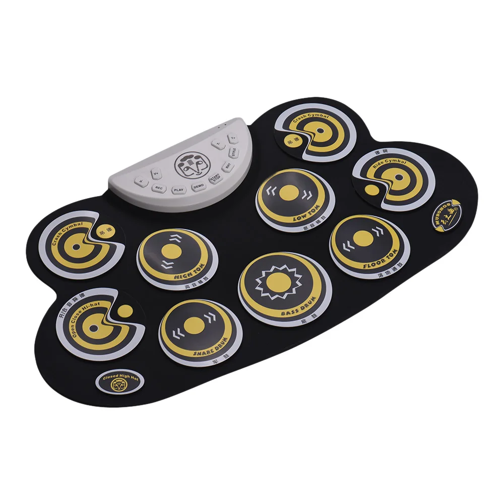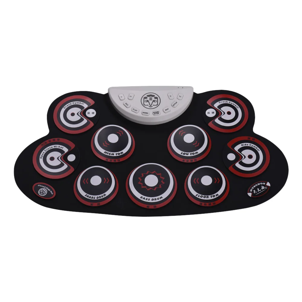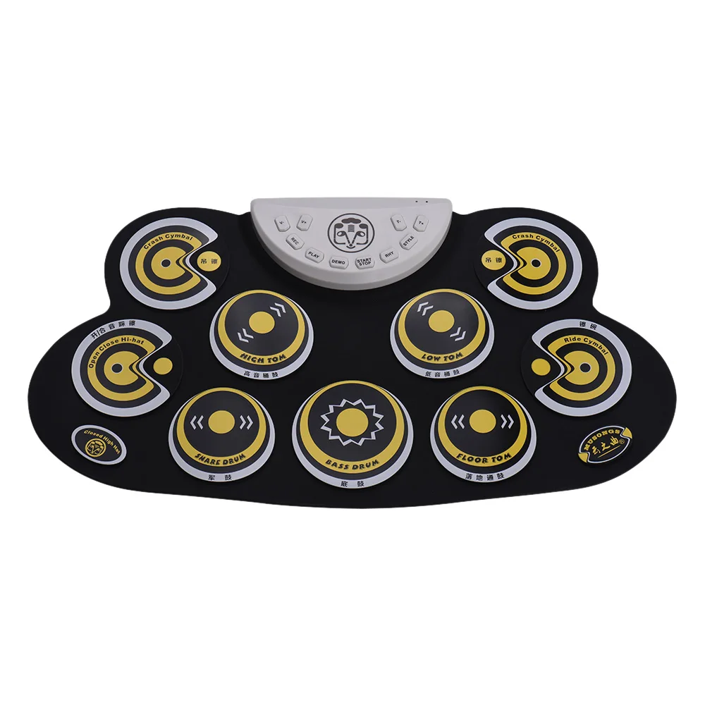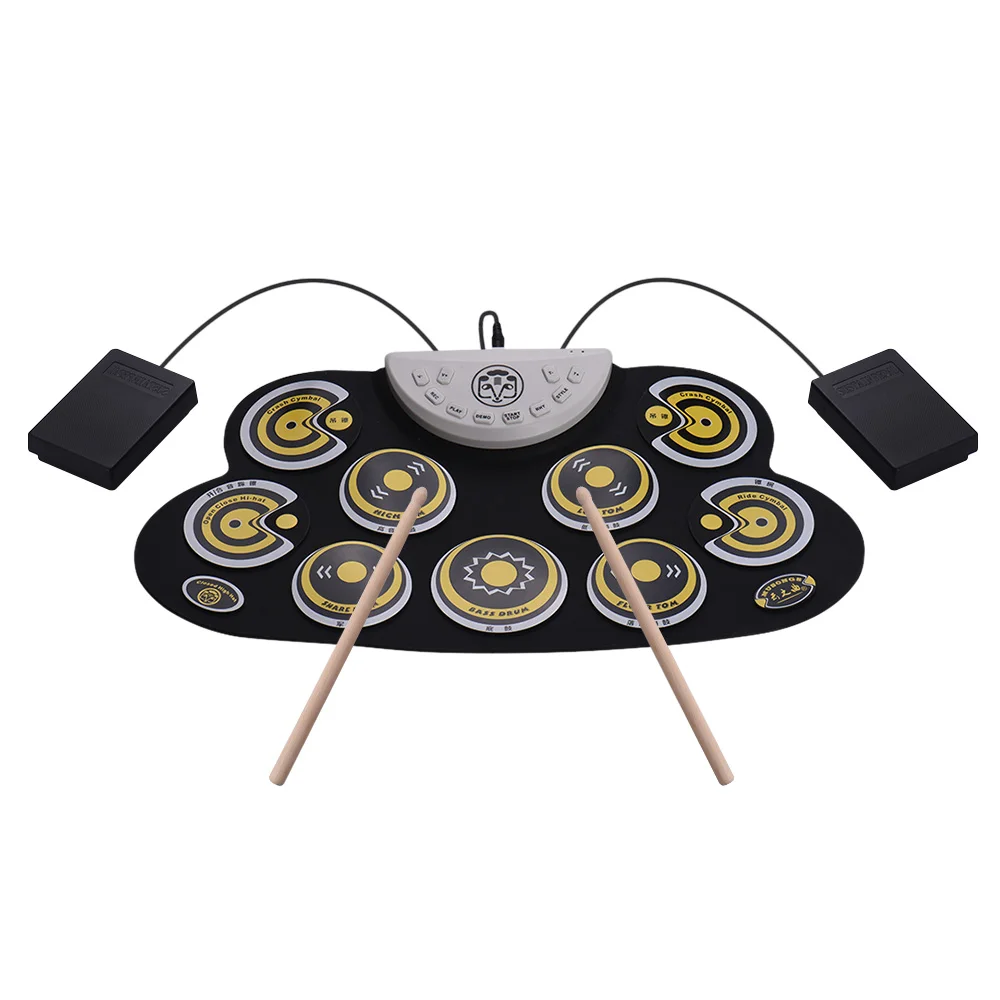 Силиконовый складной барабан с педалью, портативный электронный барабан с педалью, мультяшный дизайн, цифровой барабан для начинающих