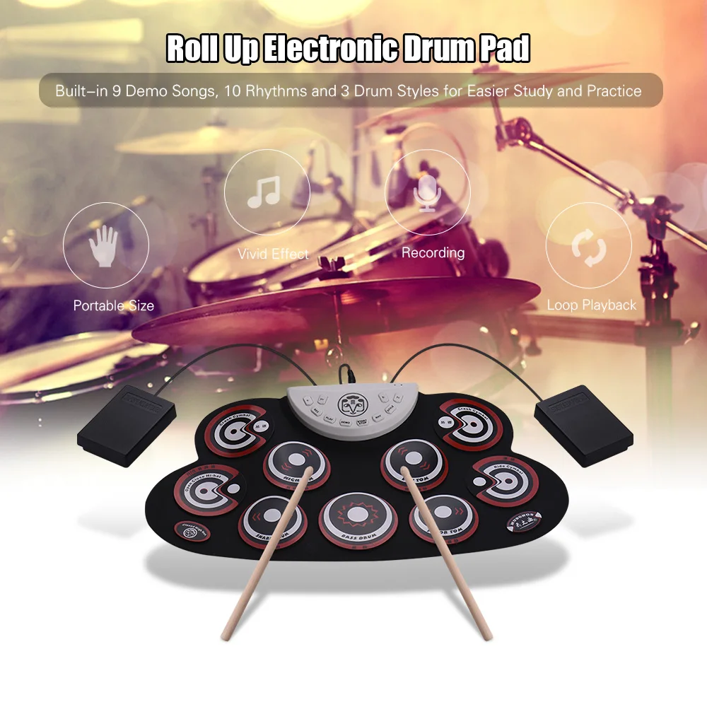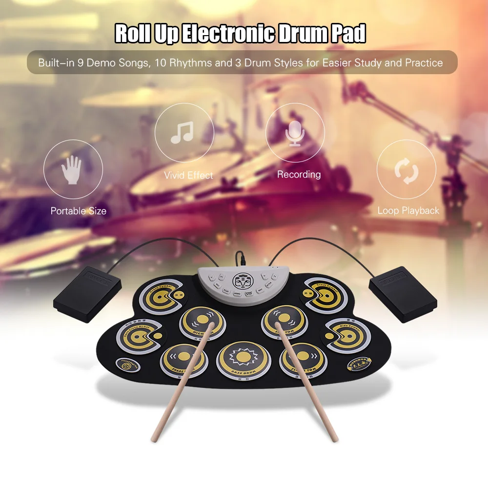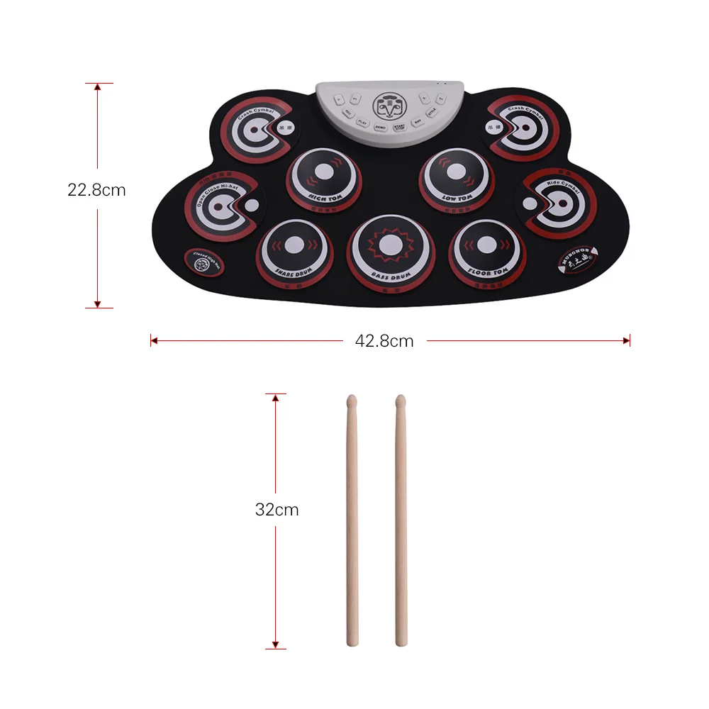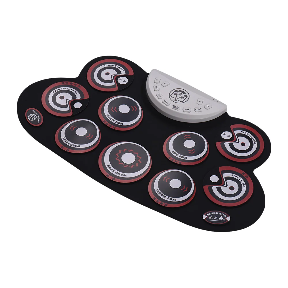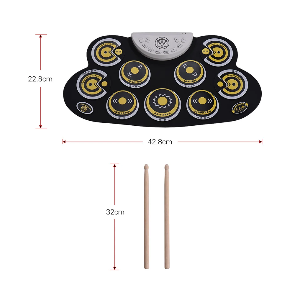 Силиконовый складной барабан с педалью, портативный электронный барабан с педалью, мультяшный дизайн, цифровой барабан для начинающих