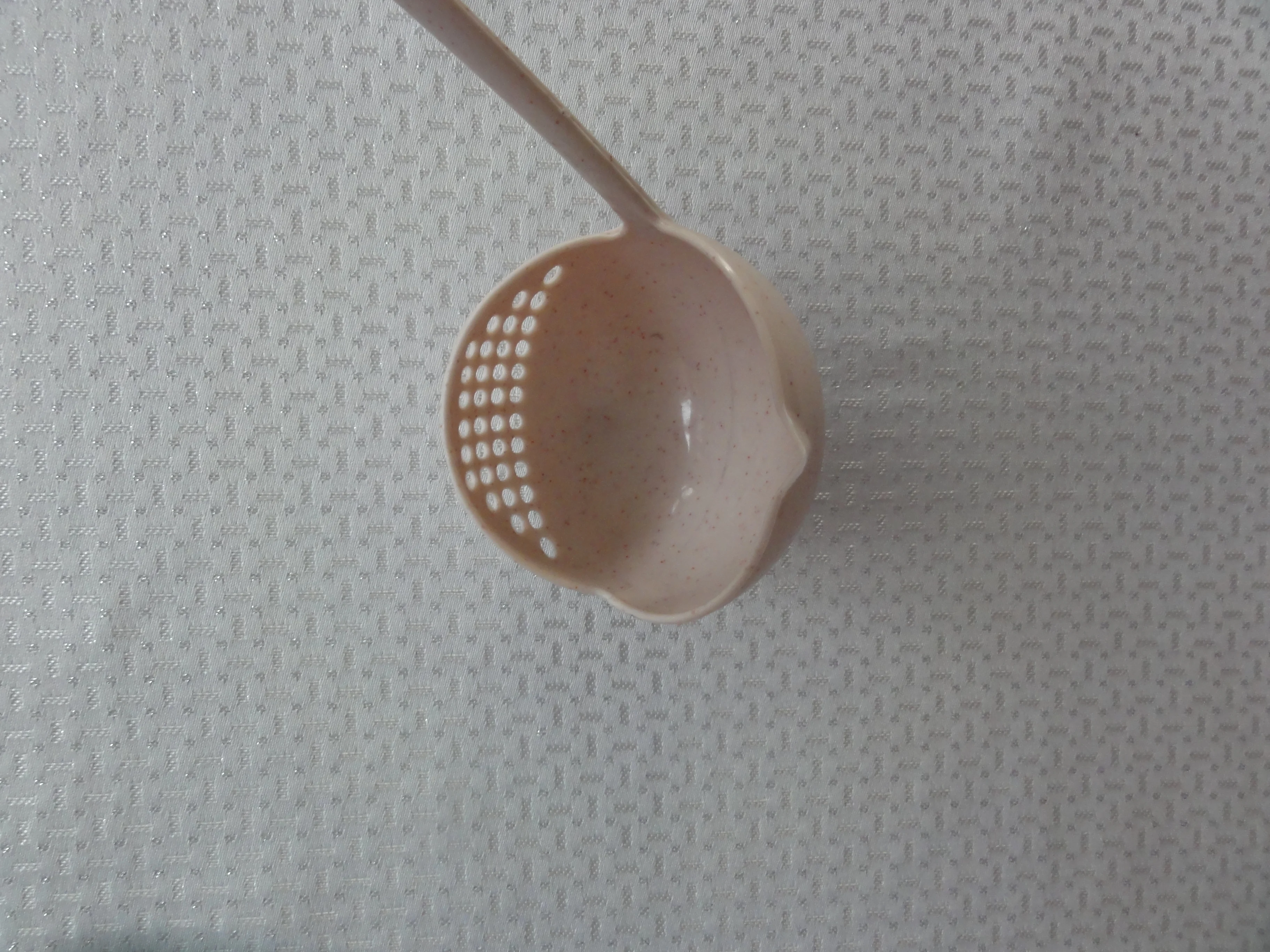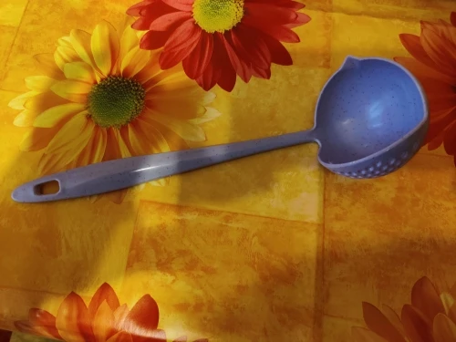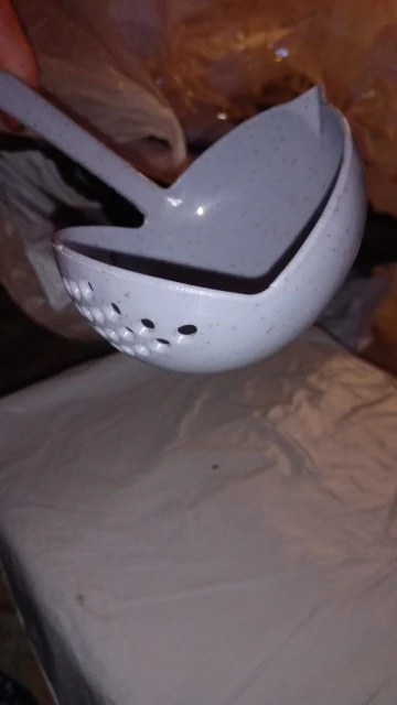 Во-первых, он меньше, чем обычный половник (и ручка короче и ковш меньше). Во-вторых, пластик с какими то вкраплениями, как будто из какого-то вторсырья, фиг знает что это было раньше. Жёсткости маловато. В общем, на троечку. В магазине бы такое не купил. С продавцом не общался, приехало с другими заказами довольно быстро