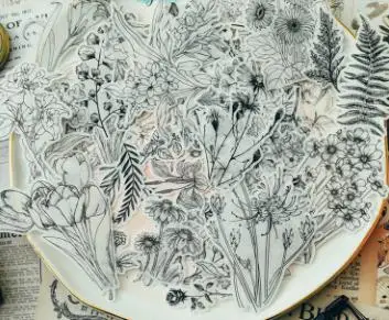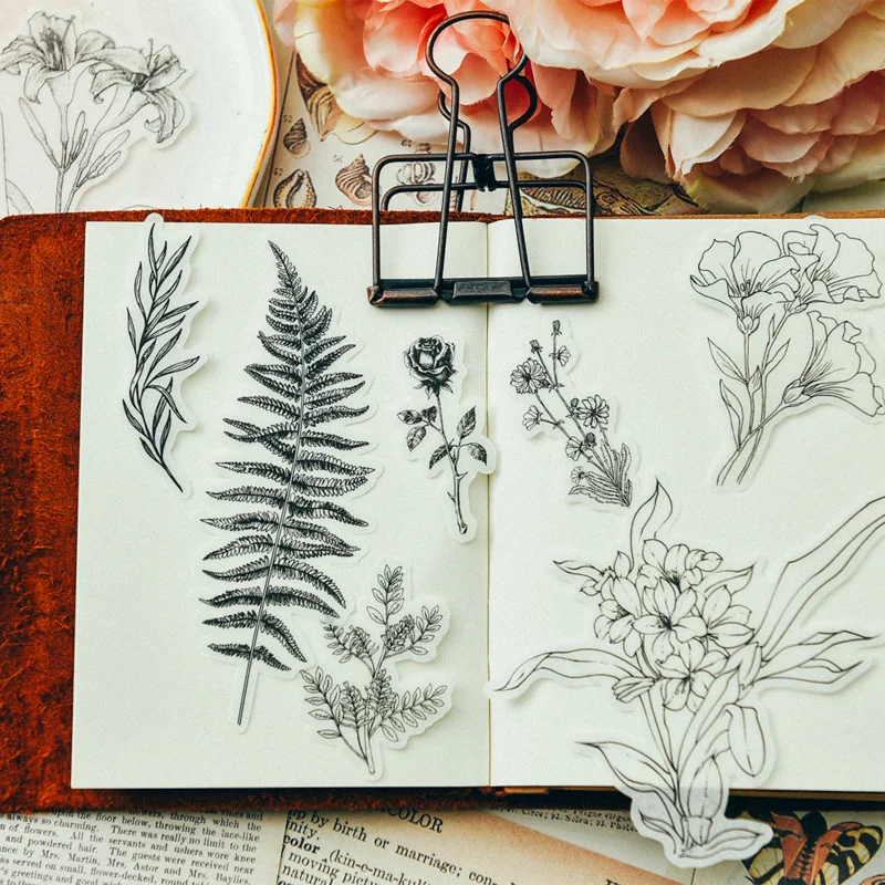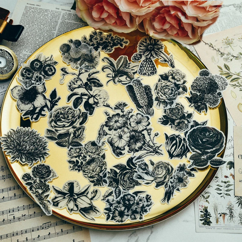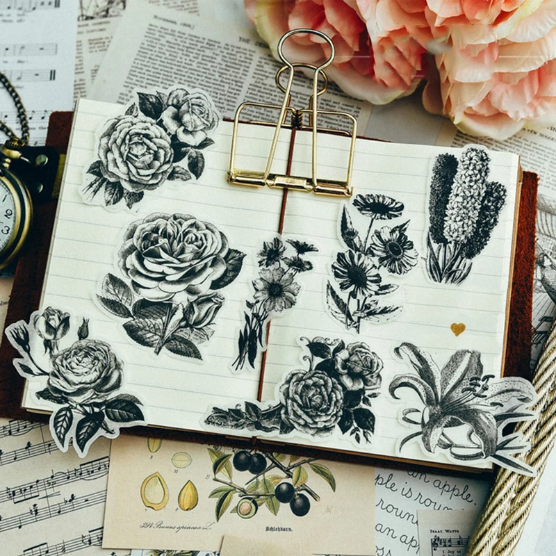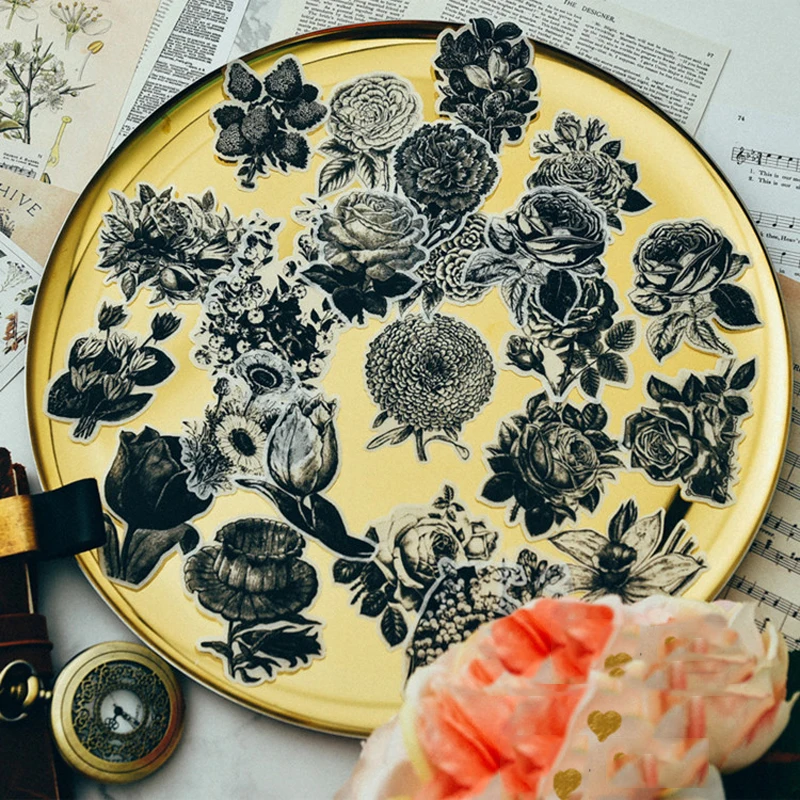 Стикер в стиле ретро с черной розой, 49 шт., винтажная наклейка для украшения растений, наклейки для ежедневника, скрапбукинга, Happy Journal