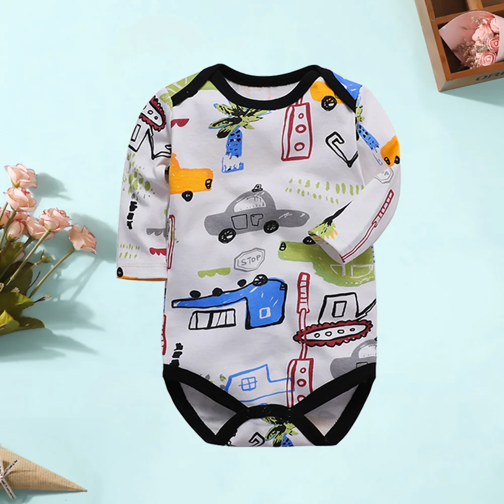 Детское хлопковое боди с длинным рукавом, с мультяшным принтом