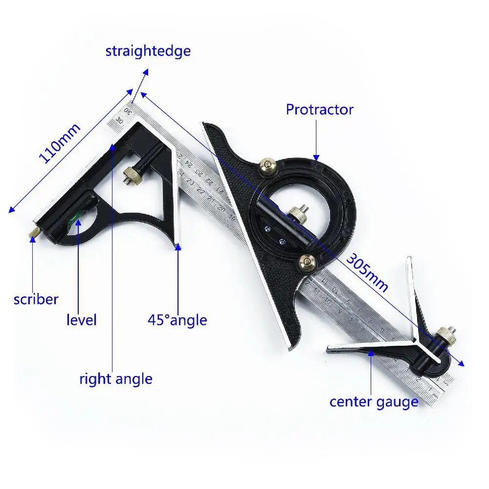 Профессиональный инструмент для плотника 300 мм, линейка с квадратным углом, транспортир из нержавеющей стали, многофункциональный измерительный инструмент