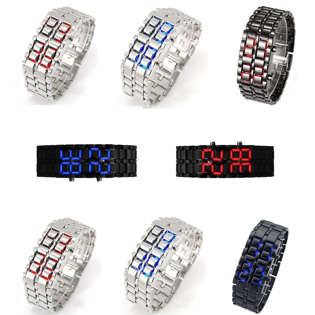 Вулканическая лава стиль железа часы для мужчин и женщин браслет цифровой самурайский Металл Нержавеющая сталь LED наручные часы Лучший подарок модные часы