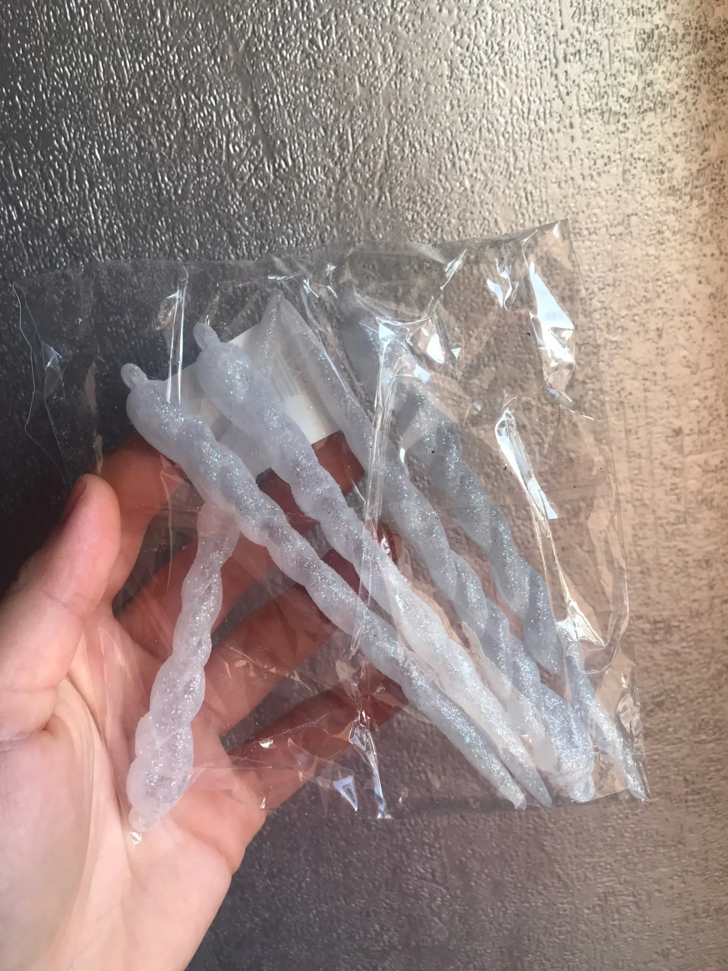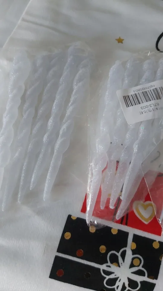 Очень красивые сосульки. Аккуратно выполнено покрытие. Я рекомендую! А блеска от них очень много! Будет всё переливаться под блеск новогодних огней.
