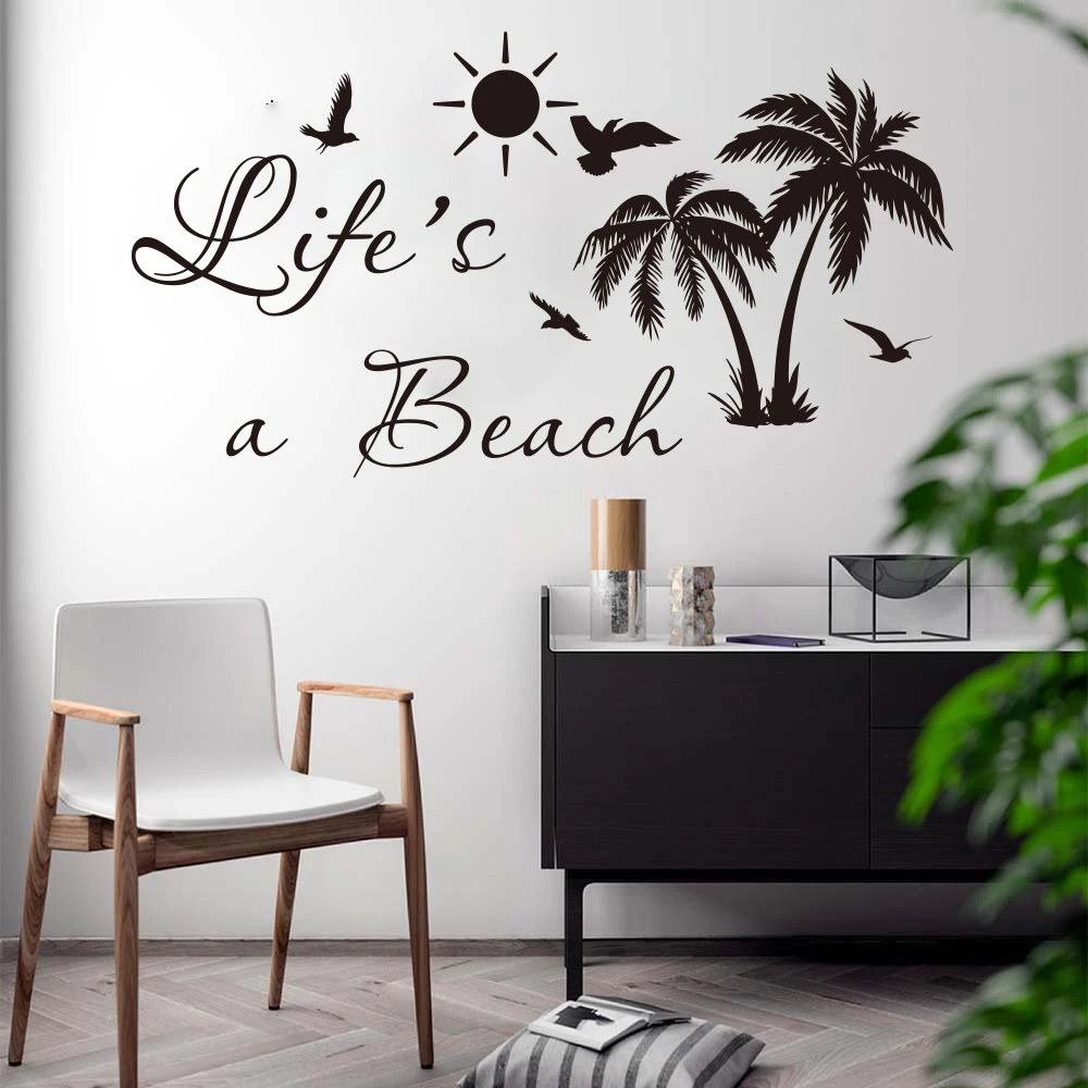 Life Is A Beach Пальма Наклейка на стену автомобиль ноутбук спальня лето прибой пляж Природа Наклейка на стену автомобиль ноутбук виниловая детская комната LW283