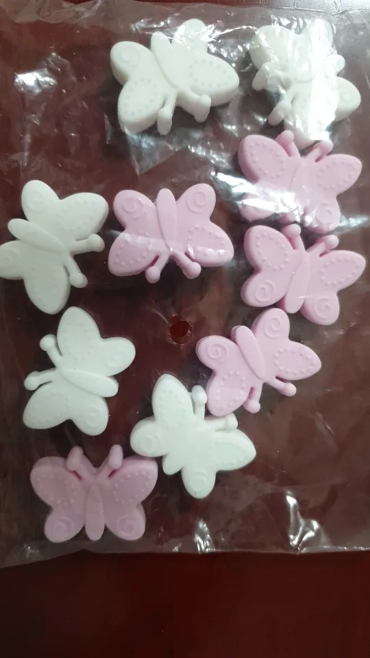 -Силиконовые бусины-бабочкиУпаковка: 5 шт./лотЦвета: 11 цветовРазмеры: 29,5*23,5*21 ммМатериал:1.100% пищевой силикон2. Без BPA3. Без ФТАЛАТА4. Нет руководства5. ПВХ бесплатно-Все продукты не содержат BPA, фталатов, свинца и ПВХ. Если вам нужен сертификат, пожалуйста, свяжитесь с нами и оставьте сообщение по электронной почте.-Новые продукты должны быть промыты теплой водой перед использованием, могут быть использованы после охлаждения, и должны быть очищены после каждого использования.-Легко чистить. Рекомендуется дезинфицировать салфетки для соски.-Пожалуйста, Стирайте перед использованием, пожалуйста, не ставьте изделие на детей без присмотра!