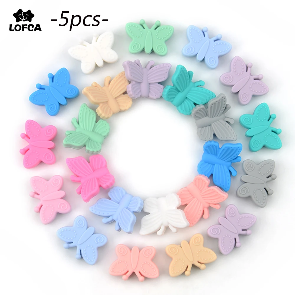 5 шт., силиконовые бусины-бабочки для прорезывания зубов