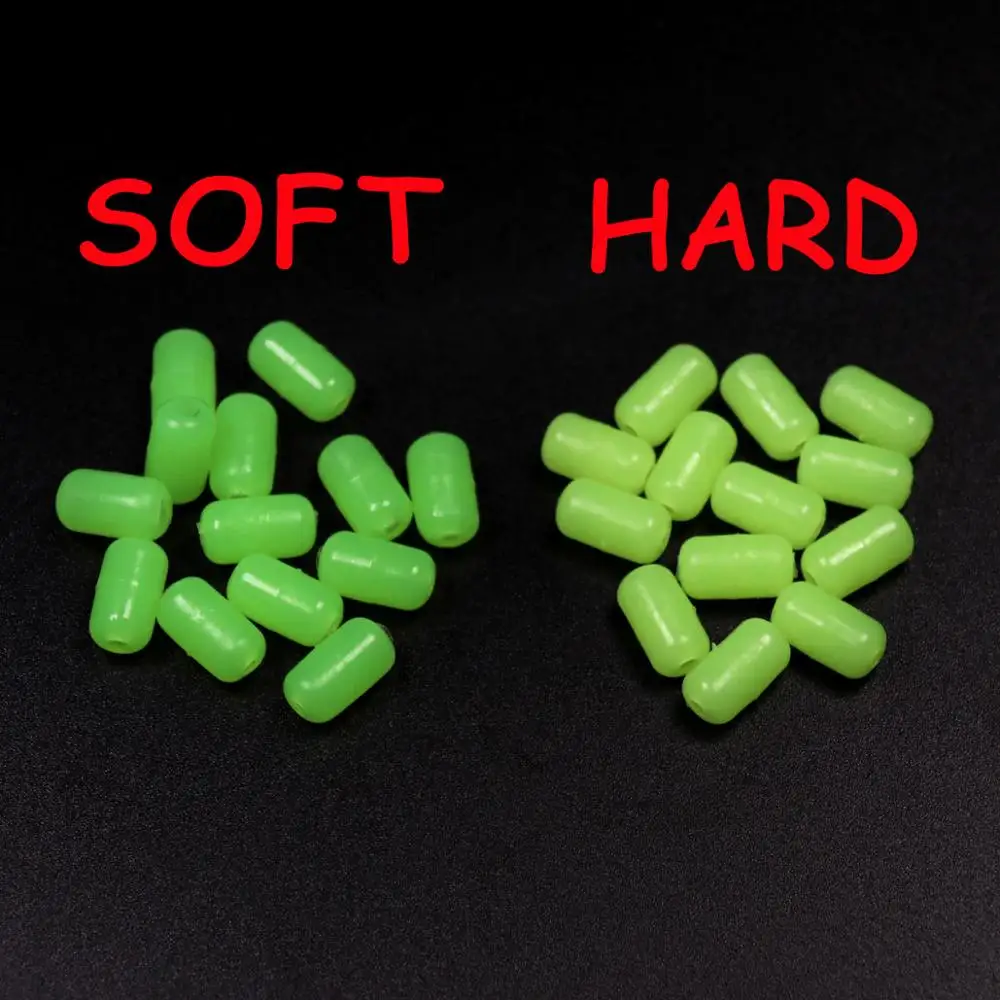 100 шт. 7*12 мм цилиндрические большие мягкие резиновые и жесткие пластиковые рыболовные светящиеся бусины, светящиеся бусины для такелажа, приманка для окуня, рыболовная приманка
