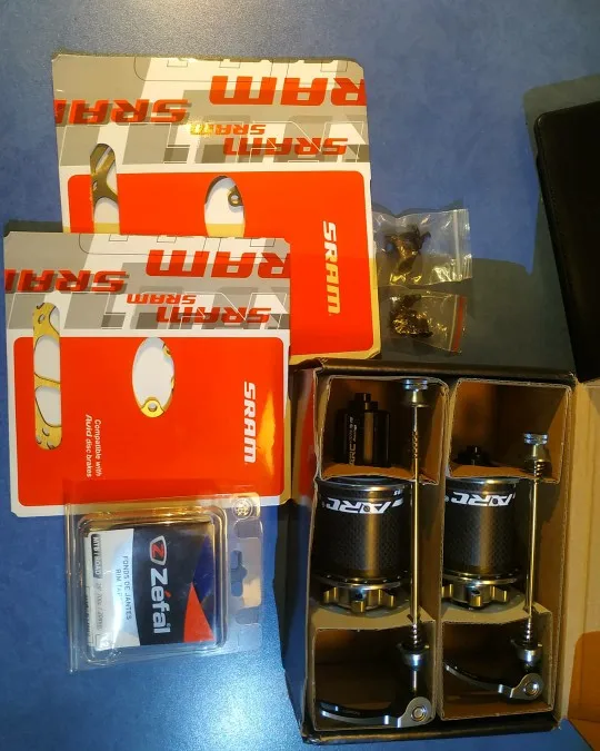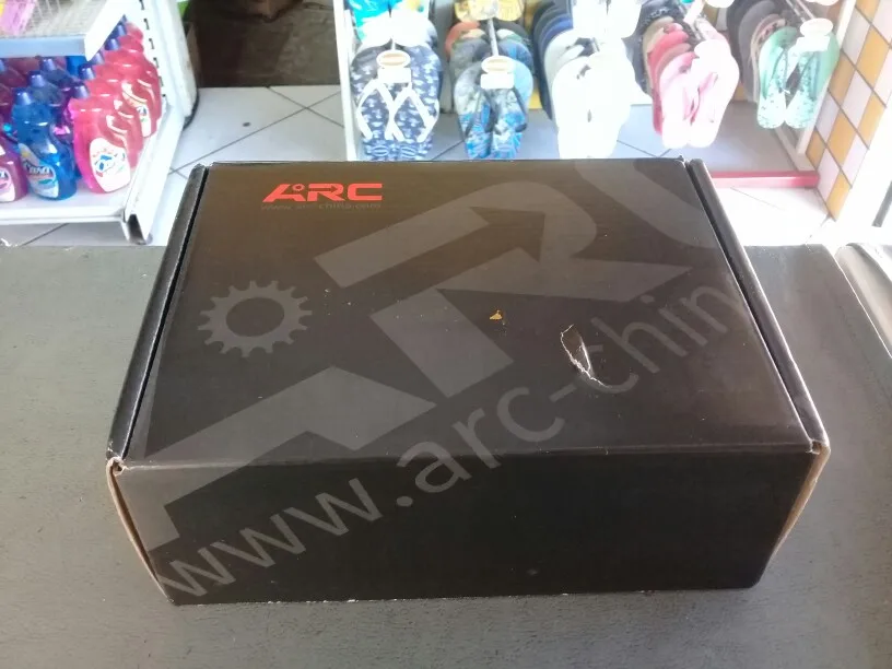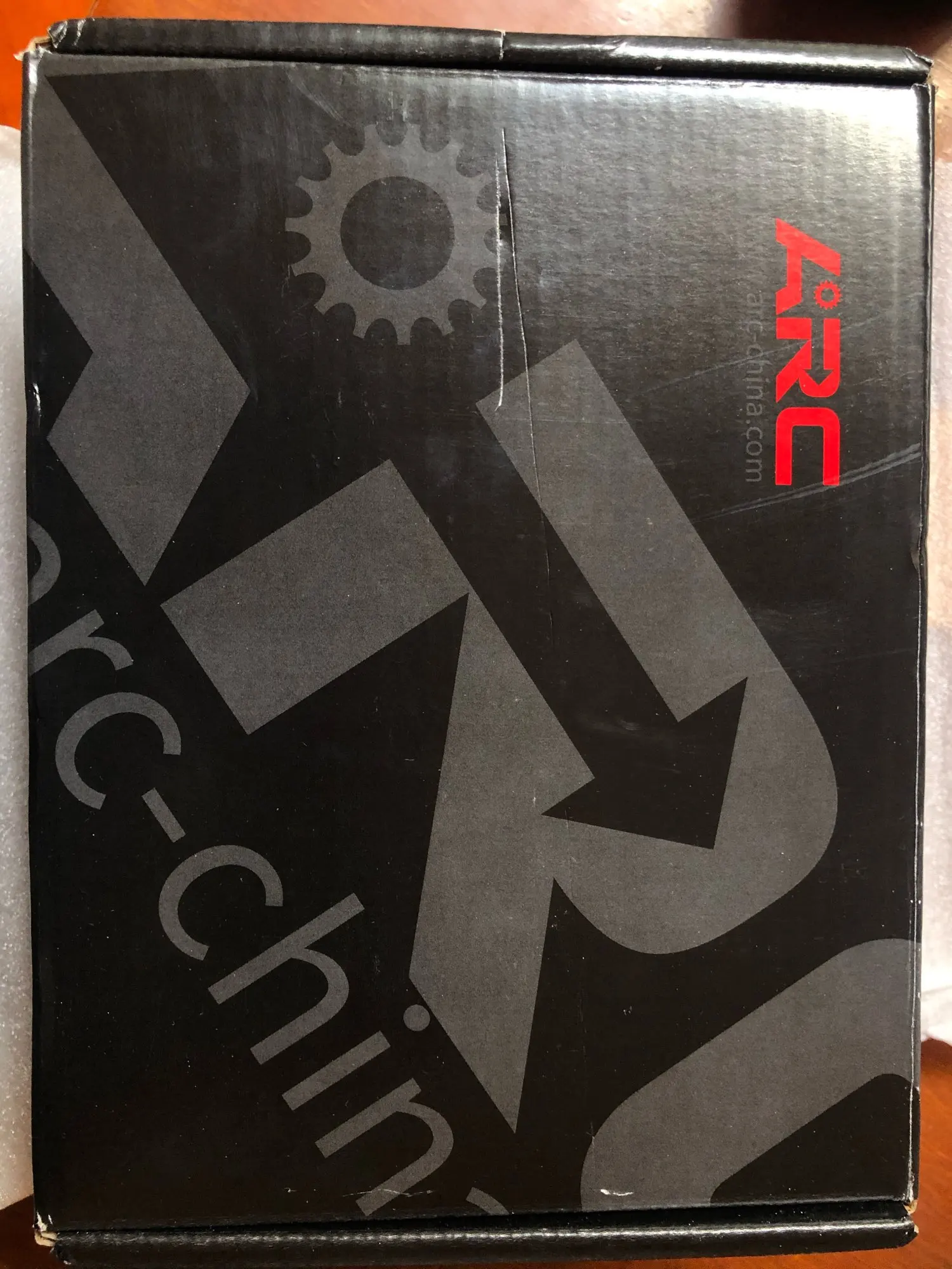 Продавца рекомендую!!! Код с коробки пробивается и выводит на линейку продукции ARC. Упаковка хорошая. Цвет необычный. Переживал, что будет просто под алюминий, но он действительно темный титан. Красиво! Маркировка лазерная есть. Надписи на карбоне четкие.