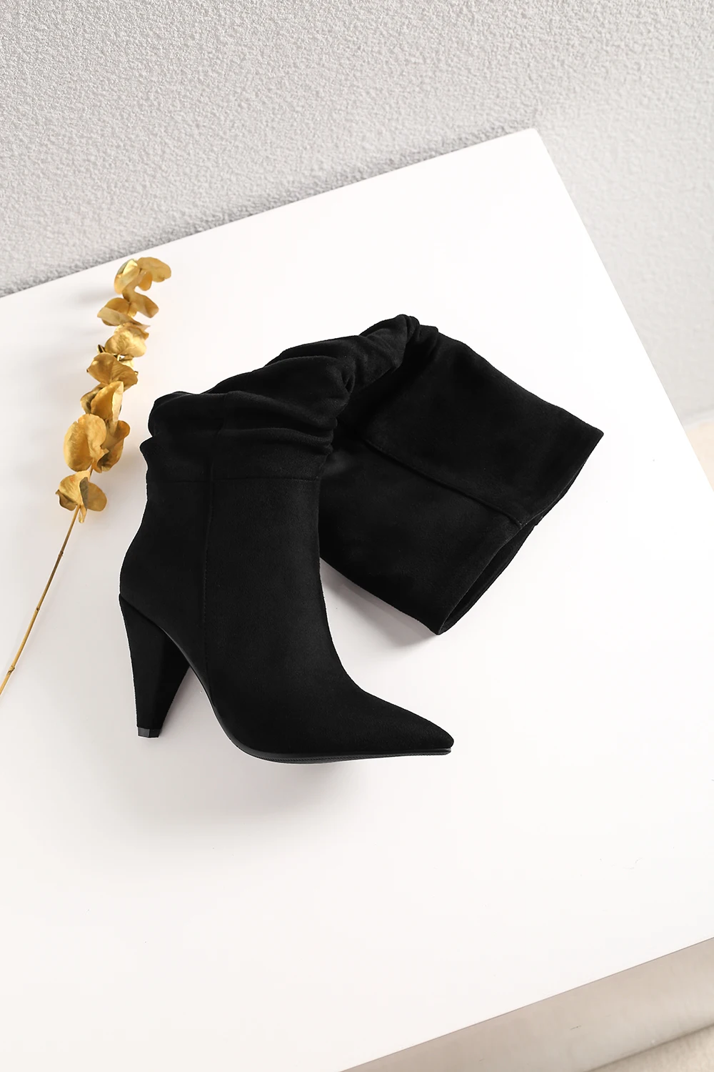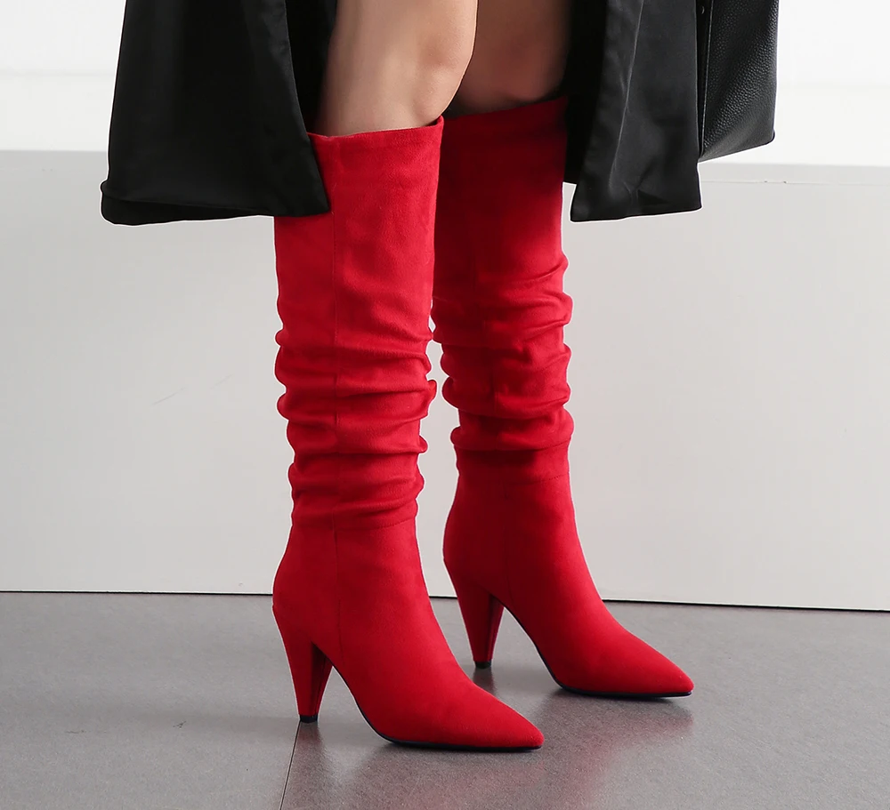 Новинка весны; Женские сапоги до середины икры со складками; Коллек...