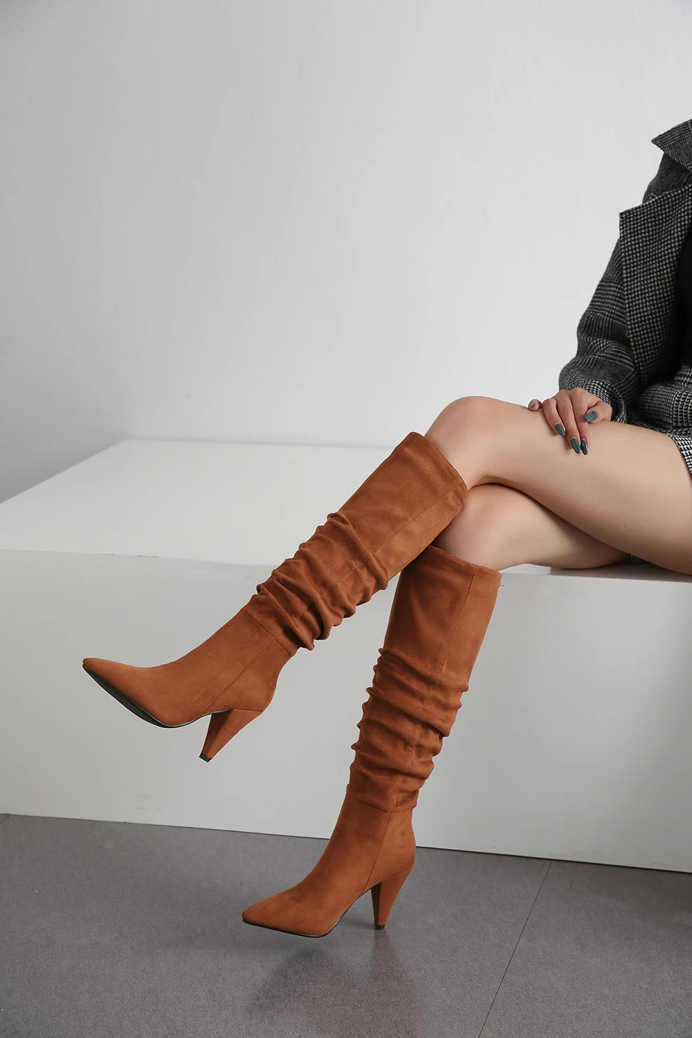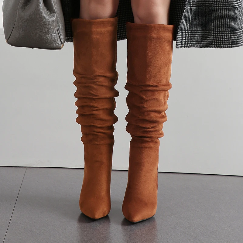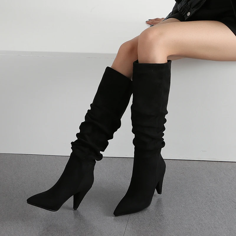 Зимние ботфорты для женщин, замшевые ботфорты, привлекательные женс...