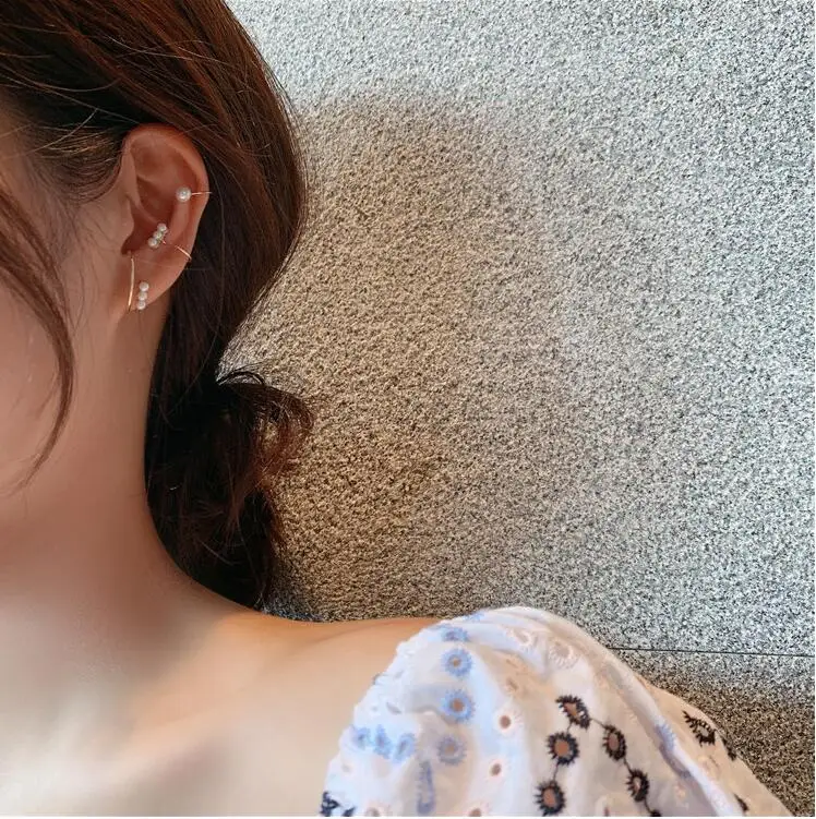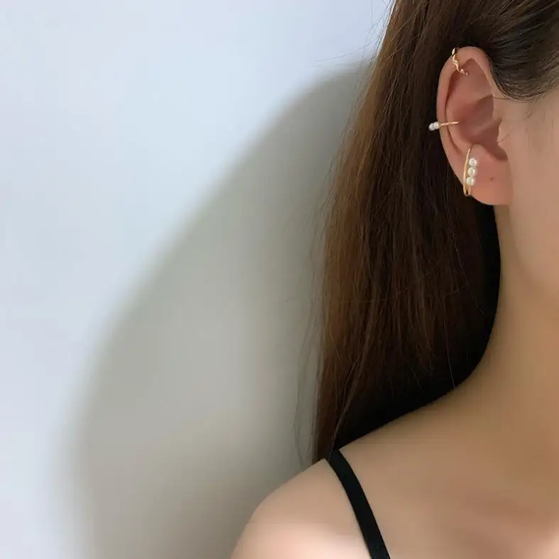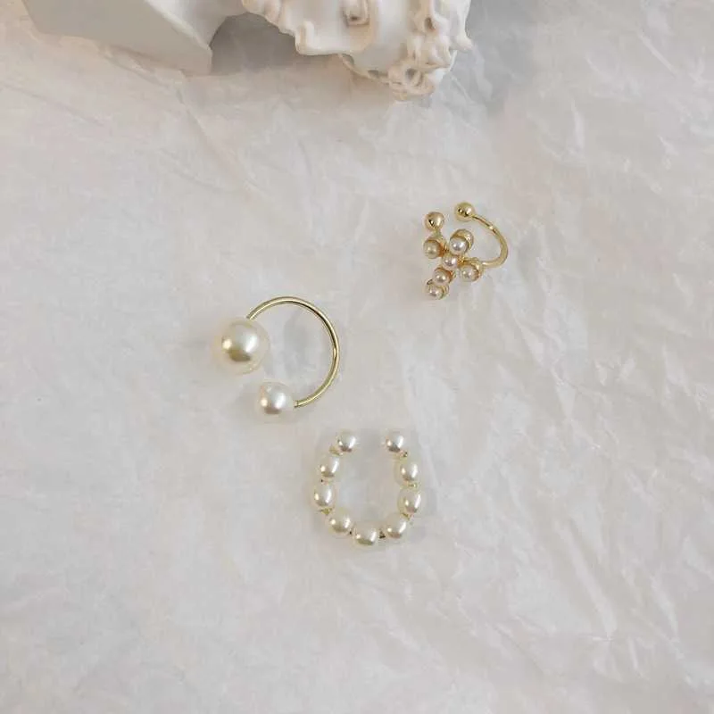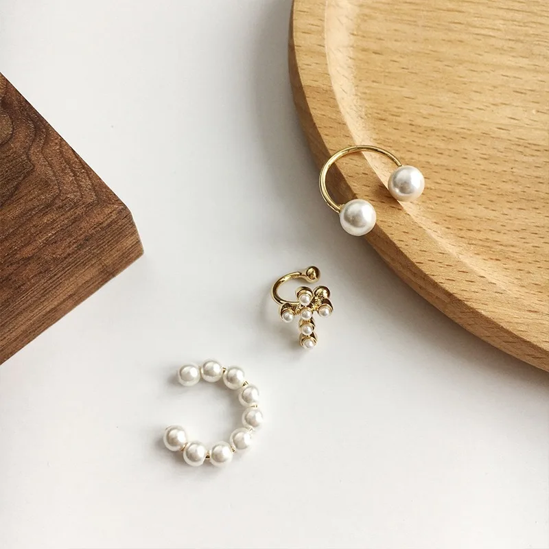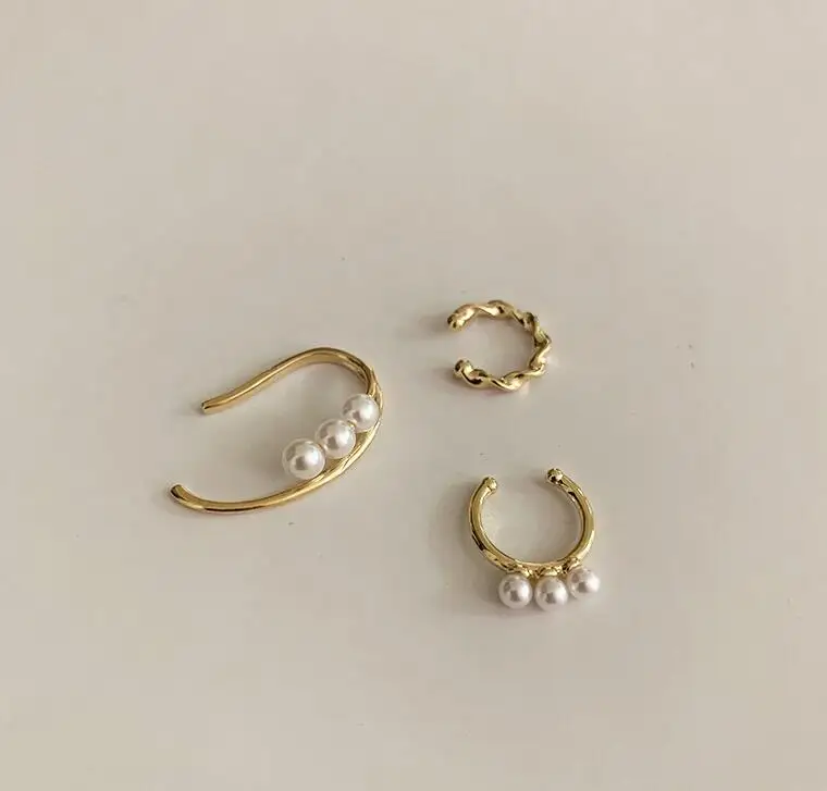 Женские серьги-каффы с жемчугом, 3 шт.компл.