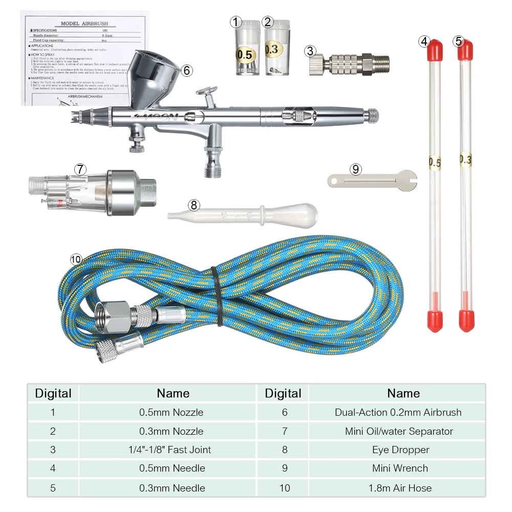 Аэрограф Двойного действия с гравитационной подачей, со шлангом 1,8 м, иглой 0,3 мм0,5 мм, чашка 9 куб. См, распылитель для художественной живописи, маникюра