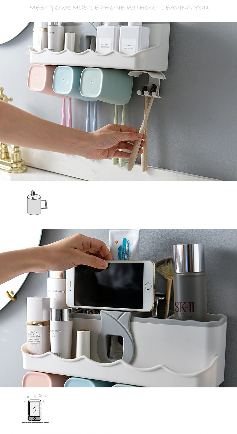 Набор аксессуаров для ванной комнаты, Автоматический Диспенсер зубной пасты, держатель для многофункциональная зубная щетка, 4 шт.