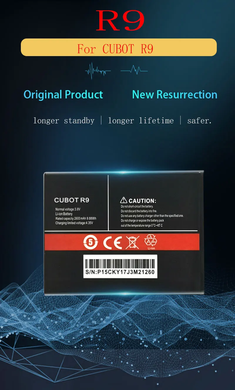 100% Новый оригинальный R 9 2600 мАч для мобильного телефона CUBOT R9 стандартная Высококачественная батарея + номер отслеживания