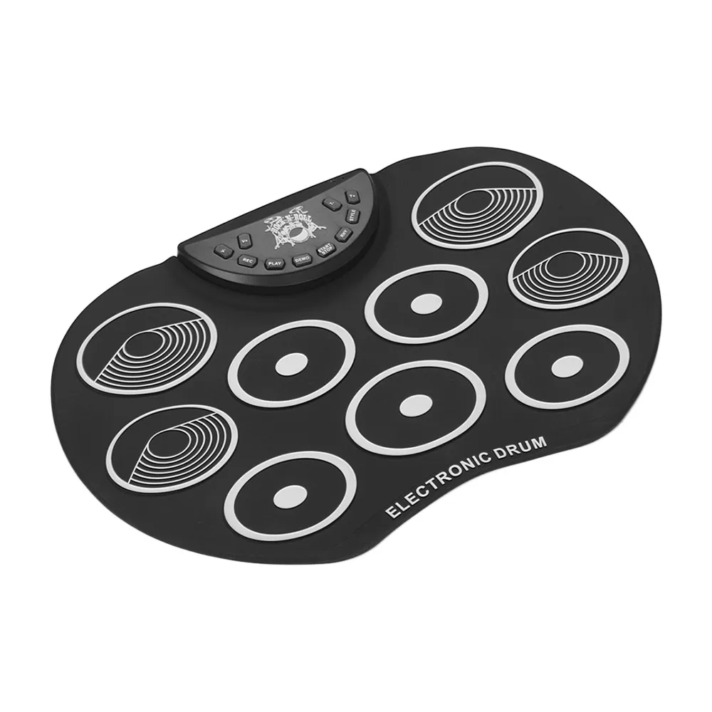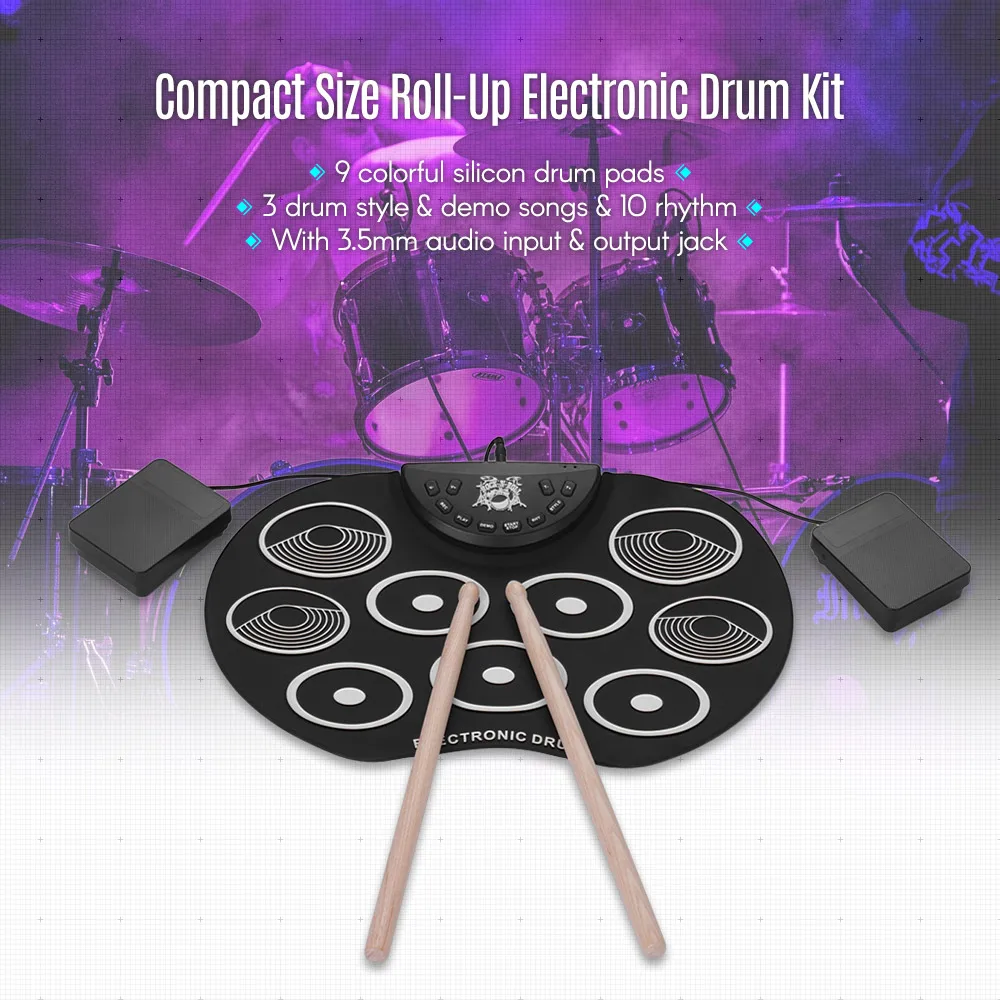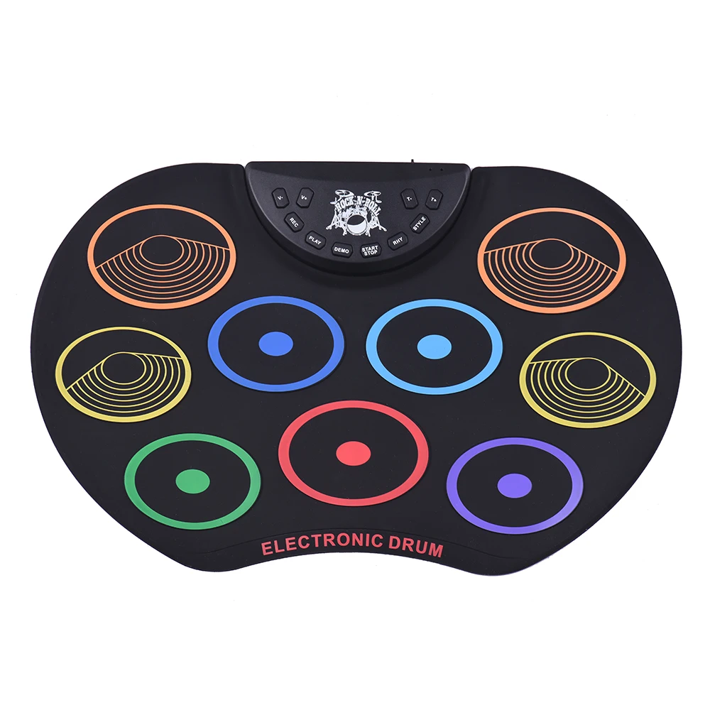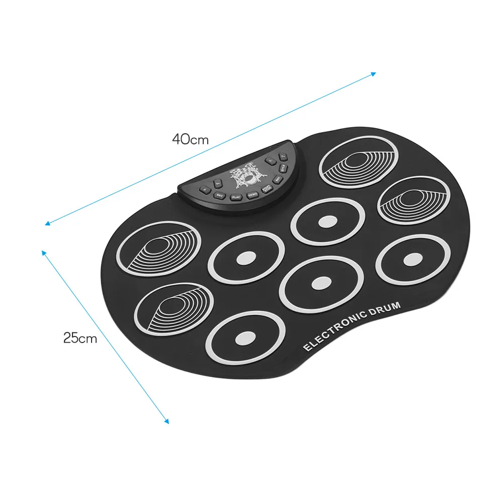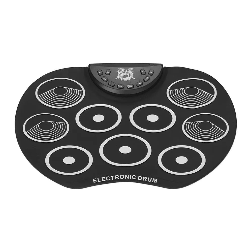 Особенности:Электронный барабан компактного размера в форме яблока, изготовлен из силикона + пластика, легкий и портативный, отличный музыкальный подарок для детей.С 9 красочными барабанными колодками, включая 3 * барабан Tom, 1 * барабан snare, 1 * бас-барабан, 3 * тарелки, 1 * Hi-hat, обеспечивая отличные звуки барабана; поддерживает подключение ножной педали, чтобы сделать игру более гибкой.Без динамика вам необходимо подключить его к внешнему динамику или наушникам через аудиовыход 3,5 мм, чтобы наслаждаться звуками барабана; также с аудиовходом 3,5 мм для подключения MP3/смартфона/планшета для воспроизведения сопровождающей музыки.Встроенные 3 барабана, 8 Демо песен и 10 ритмов, которые сделают ваше обучение и практику проще и интереснее; Поддерживает функции записи и воспроизведения, регулировку громкости и скорости.Двойной выбор источника питания: 2 батарейки типа АА (не входят в комплект) или питание от компьютера/ноутбука/адаптера питания постоянного тока 5 В через прилагаемый USB-кабель. Характеристики:Материал: силикон + пластикИсточник питания: 2 батарейки типа АА (не входят в комплект) или USB-кабель (входят в комплект)Размер изделия: 40*25*1,5 см/15,7*9,8 * дюймаВес изделия: 417 г/14,7 унцииПосылка: 31,5*17,5*6,5 см/12,4*6,9 * дюймаВес посылка: 840 г/1,9 фунта Посылка тация:1 * электронный барабан2 * барабанные палочки1 * набор педалей1 * USB кабель1 * Руководство пользователя (на английском и китайском языках)