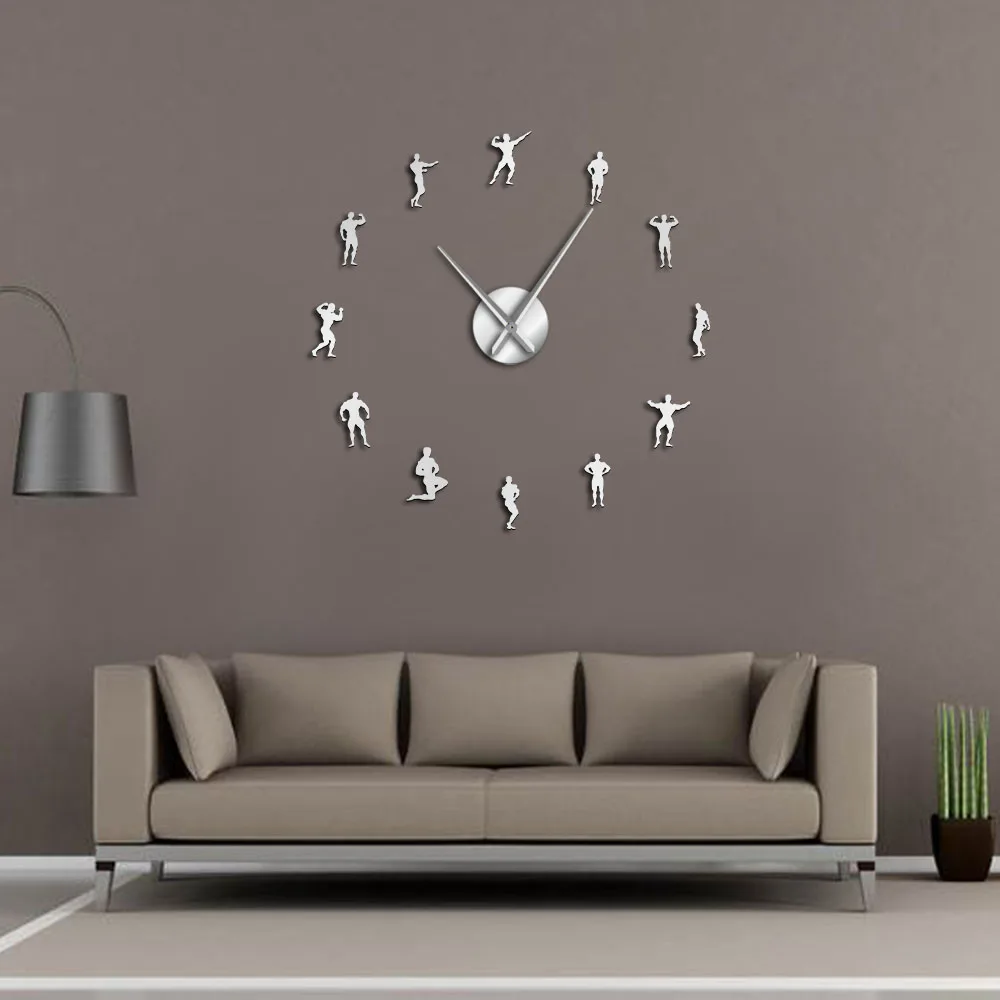 Большие настенные часы для бодибилдинга сделай сам, для мотивации тренировок, спорта, фитнеса, тренажерного зала, декоративные настенные большие часы, подарок для бодибилдинга
