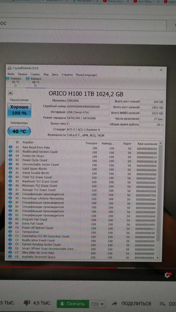 Говно это Orico. Имеется два диска. Один H100 с синей платой, другой PH100 с черной платой. Тот что с синей платой отстой. По началу скорость записи держится на уровне 250 метров (буквально пару гигов) потом падает до 20 метров. С черной платой результат на уровне 250 метров на всем протяжении диска. Скорость чтения у обоих дисков нормальная. Что попадет при покупке диска вопрос. Писал продавану. Тот вокруг да около. Так ответа адекватного не дал. Вообщем рулетка. Для себя сделал вывод: лучше добавить бабла и купить именитую фирму чем купить китайский работай как-нибудь. НЕ РЕКОМЕНДУЮ!!!