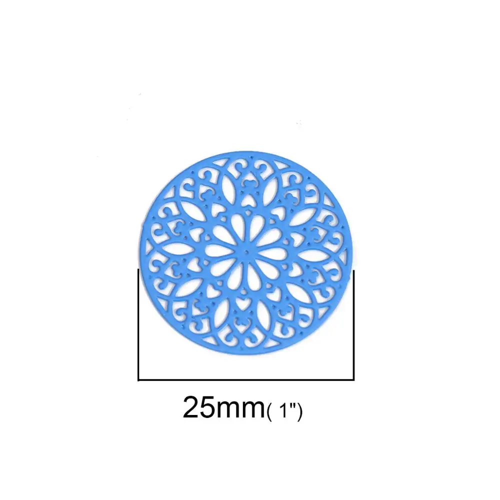 DoreenBeads модные медные соединители, круглые черные, синие, красные, Белые Полые ювелирные изделия в форме цветка, фурнитура сделай сам, подвески диаметром 25 мм, 10 шт.