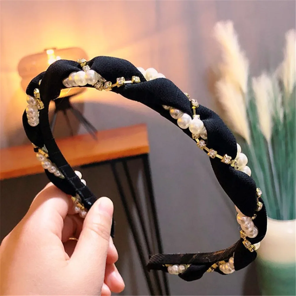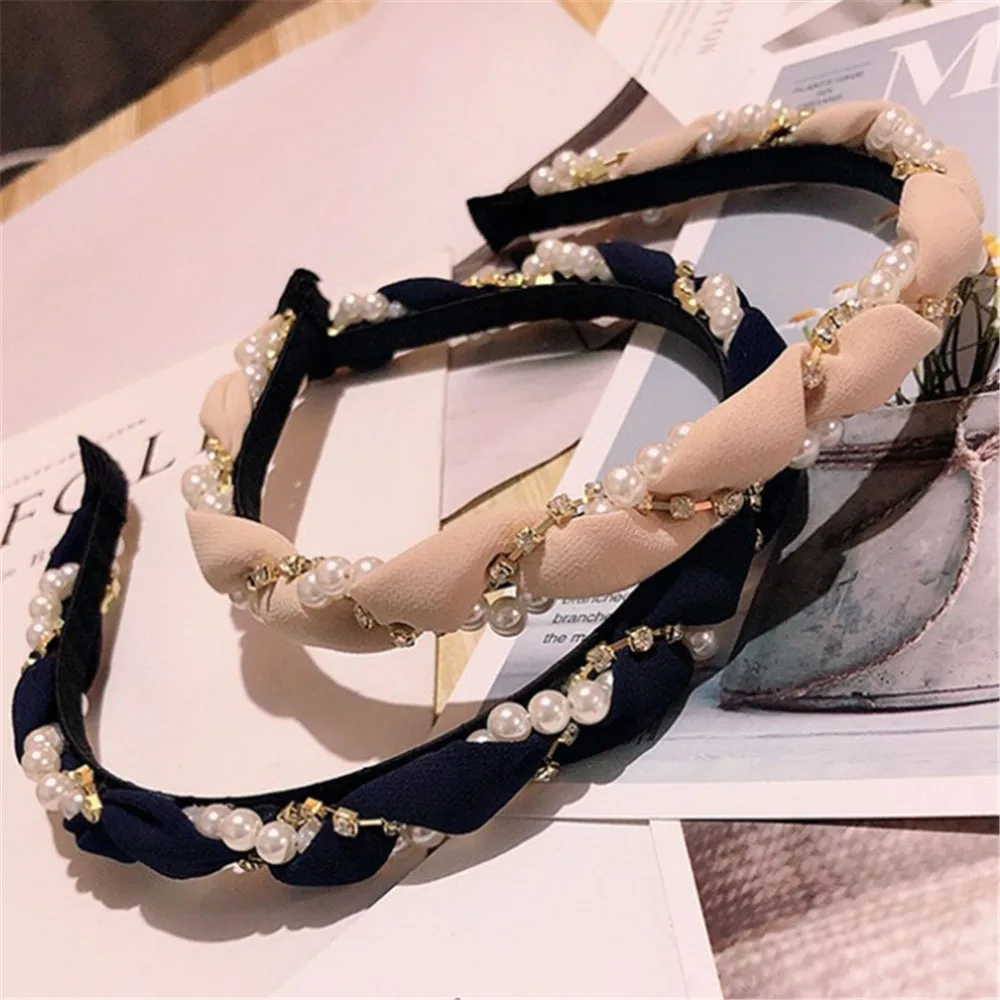 Повязка на голову женская, с жемчугом и кристаллами, 100%
