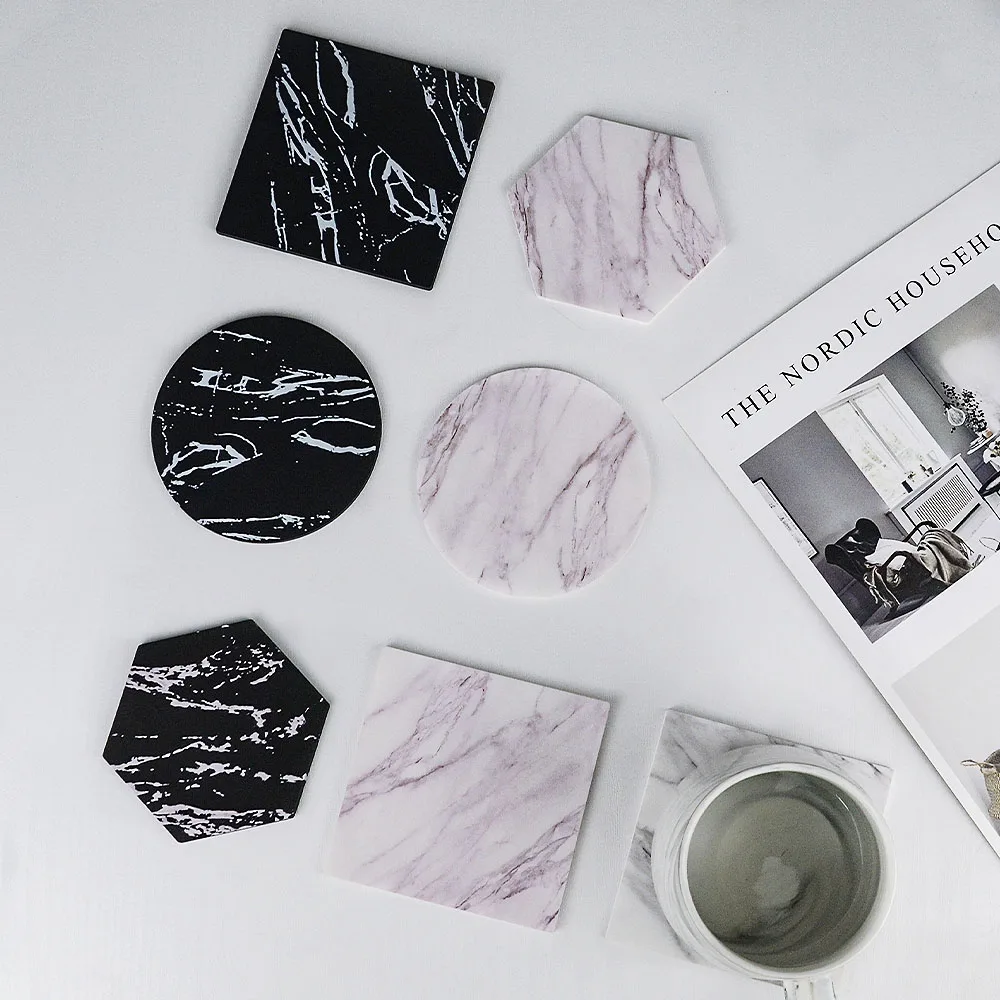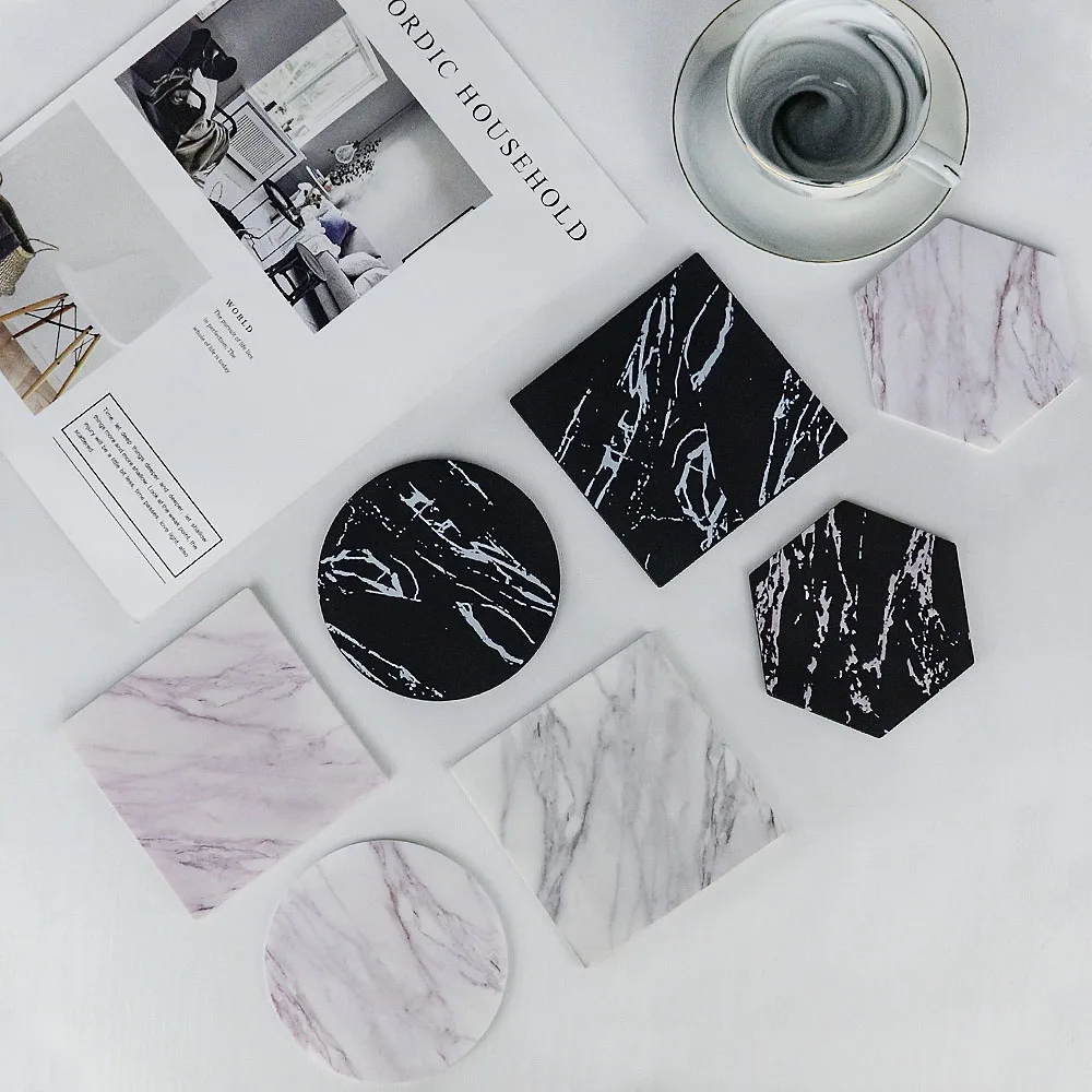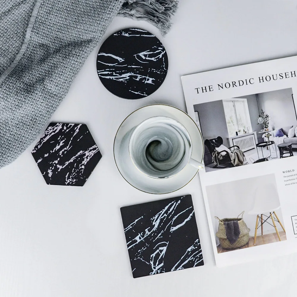 Шикарный креативный силиконовый подстаканник с имитацией мрамора, коврик для кофейной чашки, черный, белый, мягкий, водонепроницаемый, нескользящий коврик, украшение стола