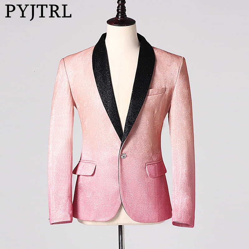 Мужские стильные Блестящие модные повседневные блейзеры PYJTRL цвета шампанского, женское платье для выпускного вечера, костюм, куртка, певицы, пальто, костюм