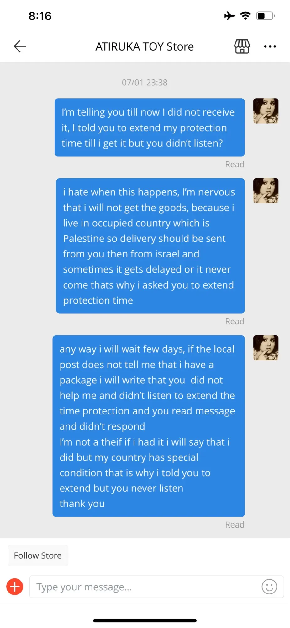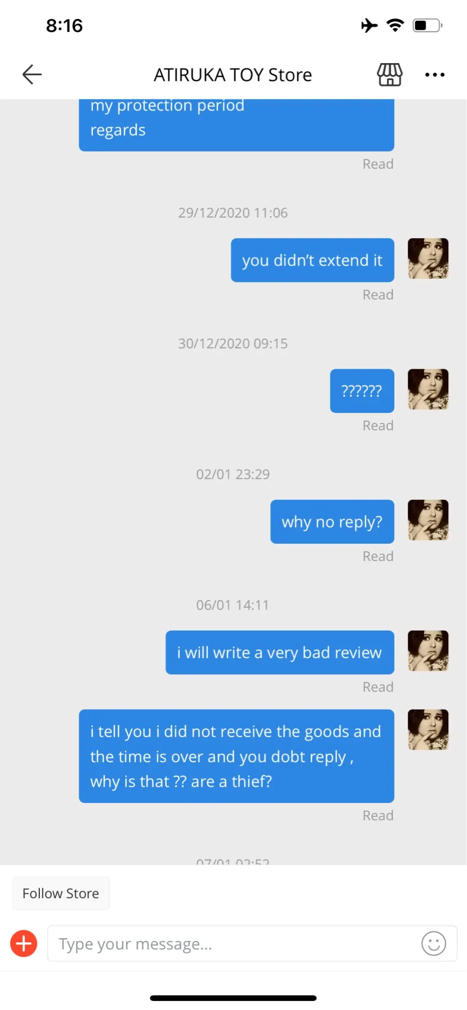 guys DO NOT BUY from this seller, he simply does not help if you need a help, he reads and he does not response, I asked him to extend my protection period because I did not receive the goods and he did not, he simply read my meassge and my demand and he did not reply, if you want to put your money in trash buy from this seller, I attached photos that prove my opinion.