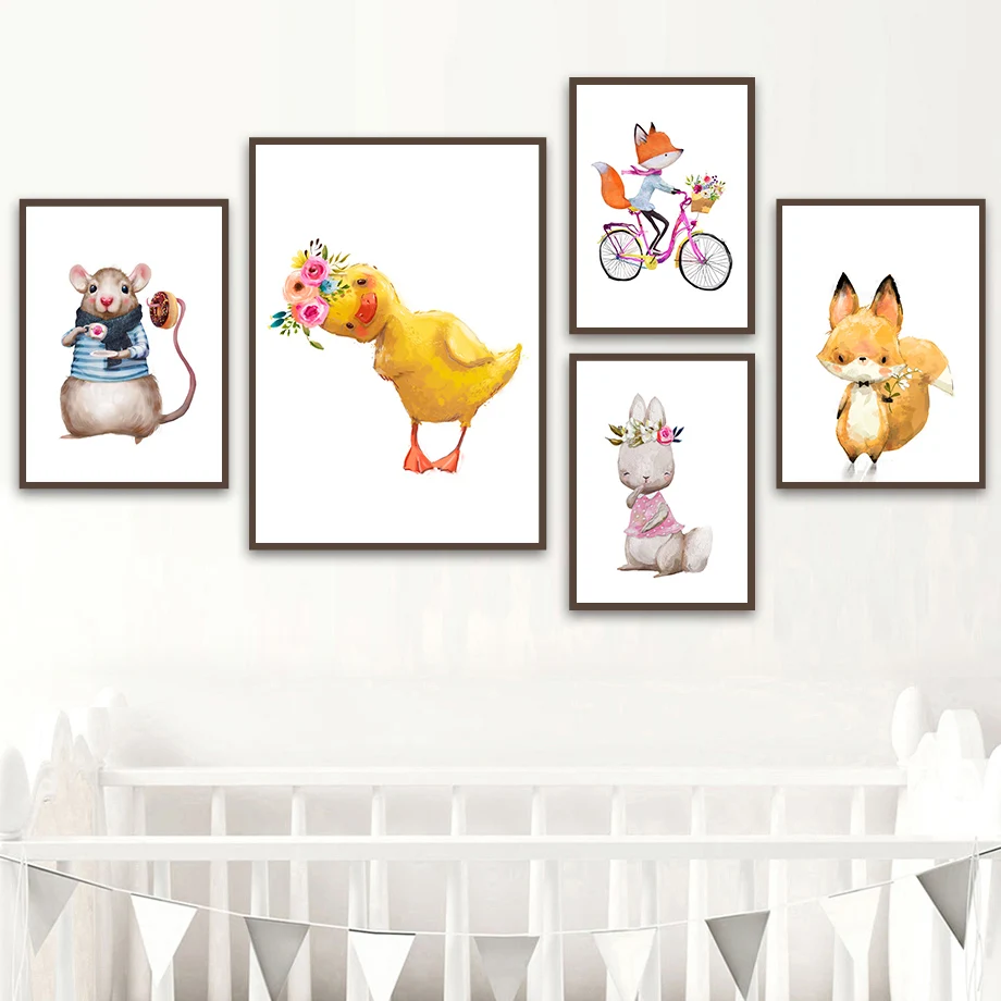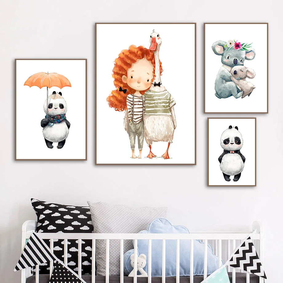 Настенная картина для детской комнаты с изображением коалы, утки, п...