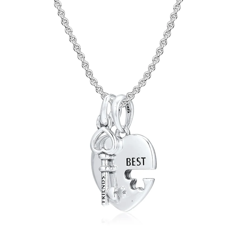 Подвеска в виде сердца и ключа для лучших друзей, Подвеска для женщин, ювелирные изделия сделай сам, браслеты и подвески для браслета, 925 Оригинальные Серебряные Бусины
