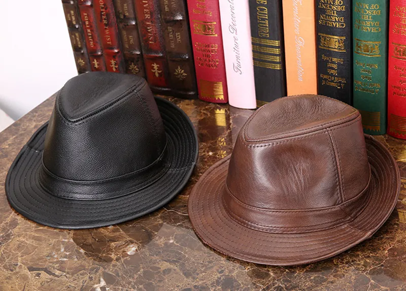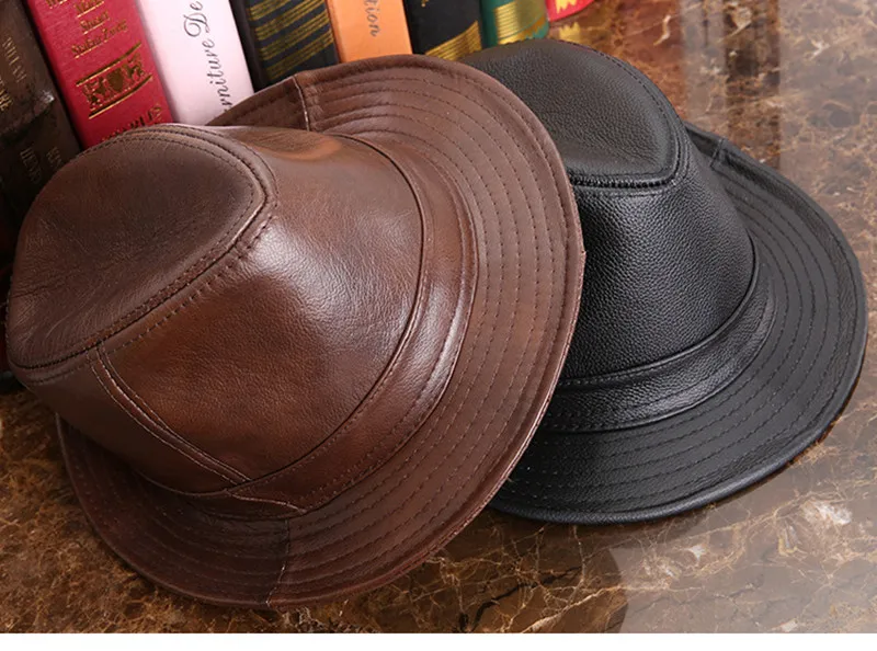 Шляпа мужская из натуральной кожи, элегантная Панама из воловьей ко...