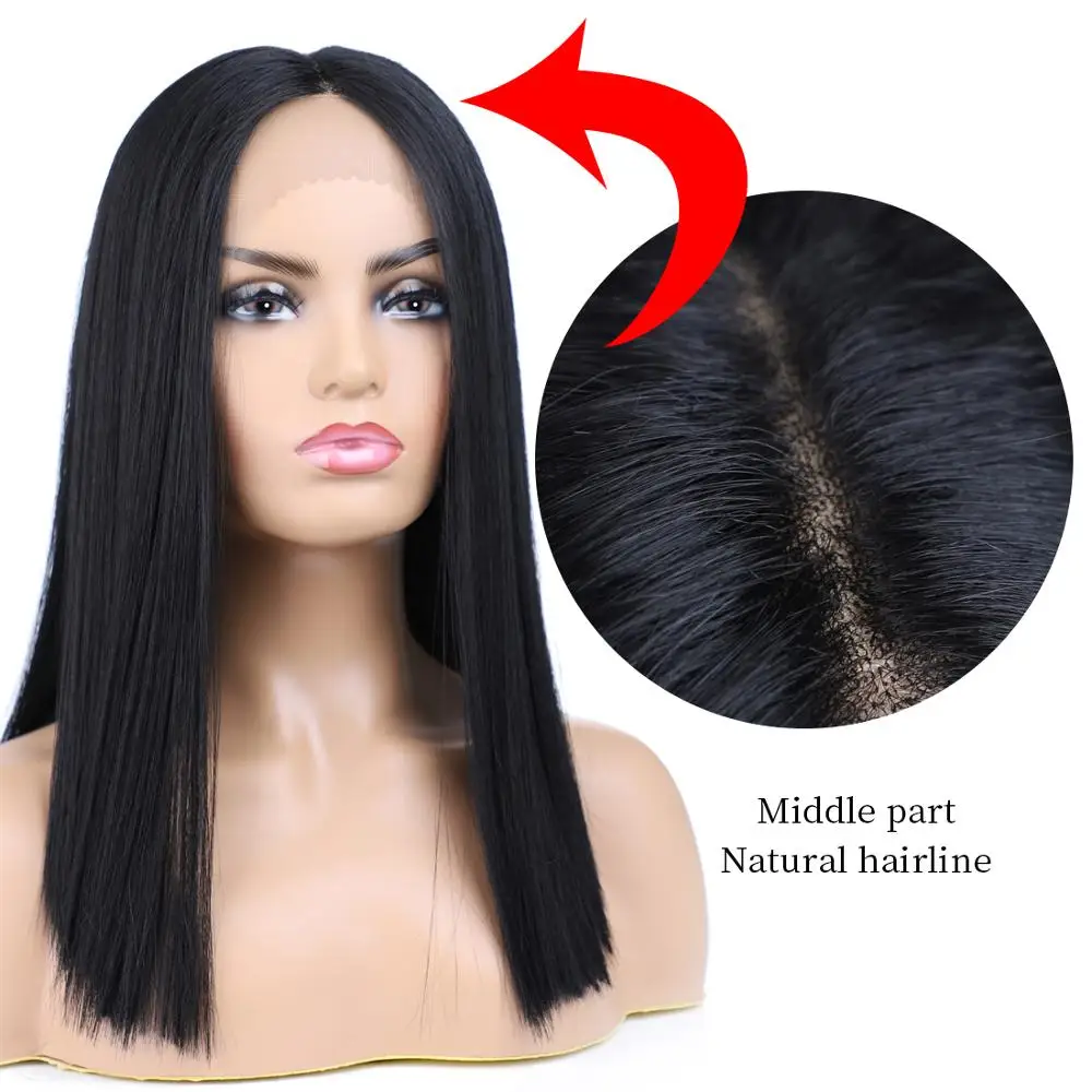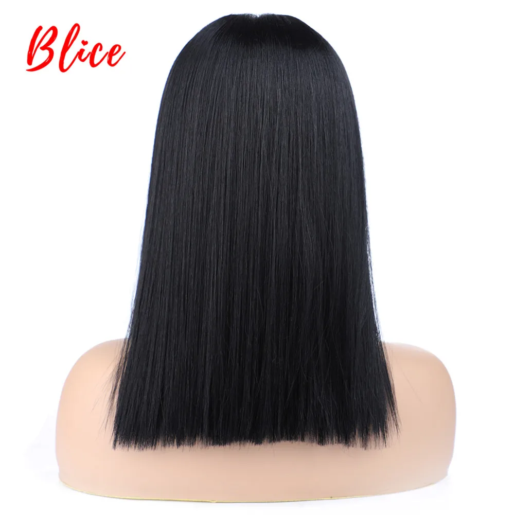 Парик Blice короткий Боб на сетке спереди синтетические волосы натуральный черный Yaki прямой средней части парик для женщин