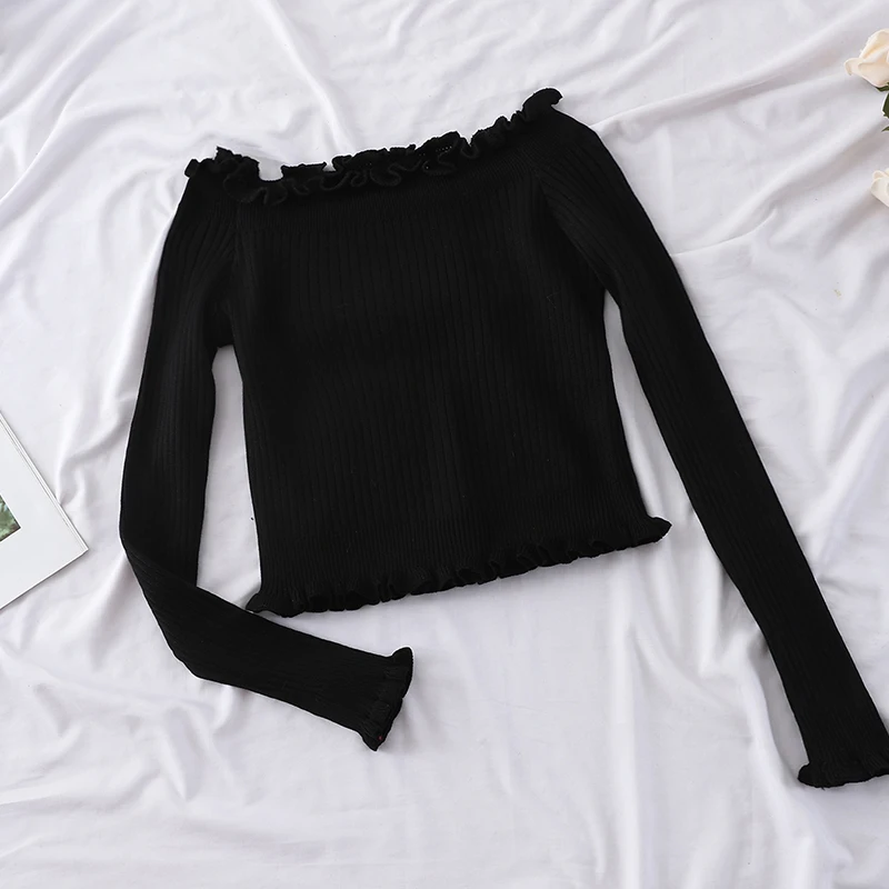 Осенние женские свитера, сексуальные женские хлопковые вязаные джемперы с воротником-лодочкой и открытыми плечами, корейские шикарные пуловеры, вязаная крючком одежда, топы